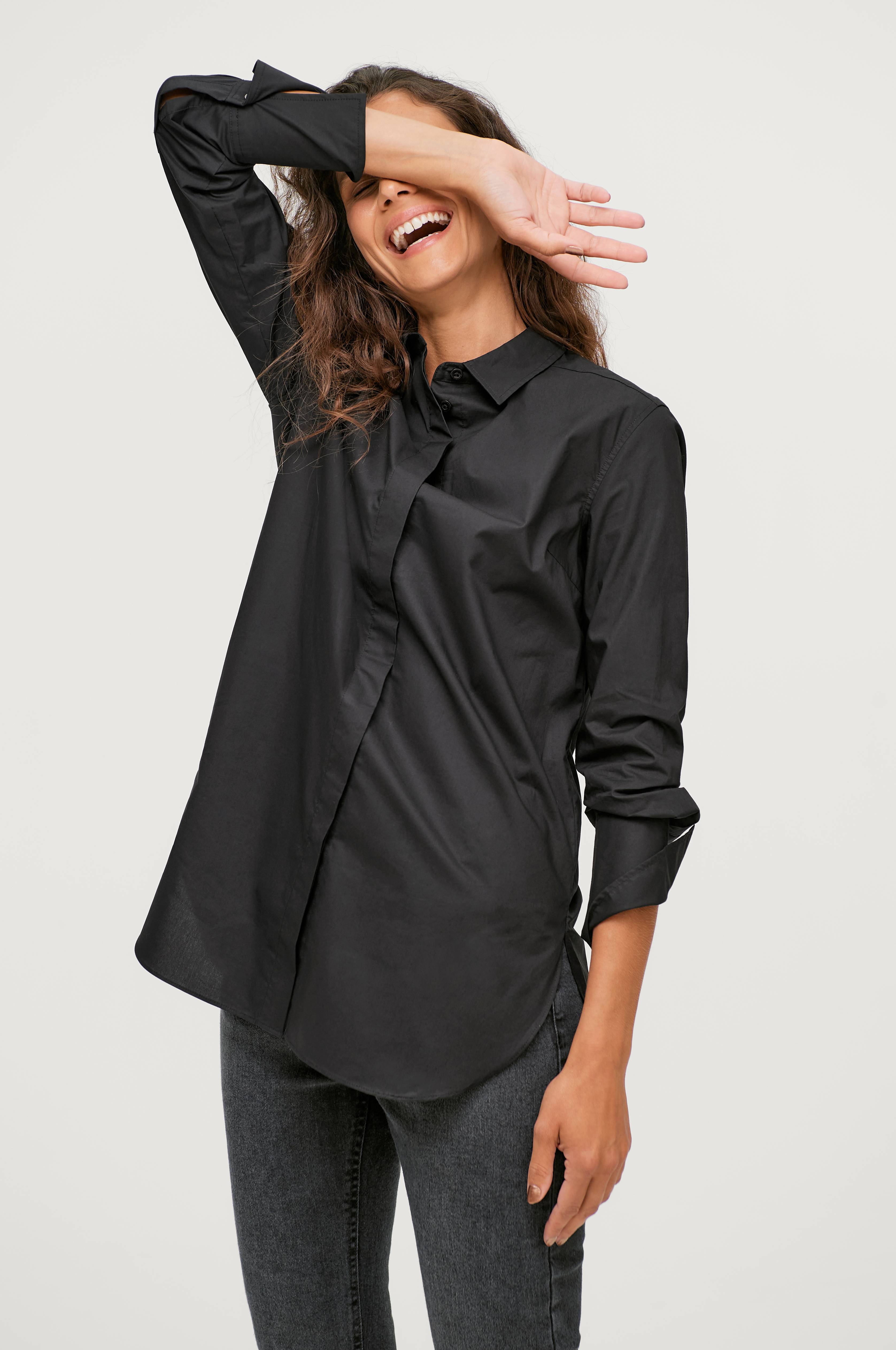 Kæmpe lusket længere bluse i sprød bomuld. Meget nyttigt!