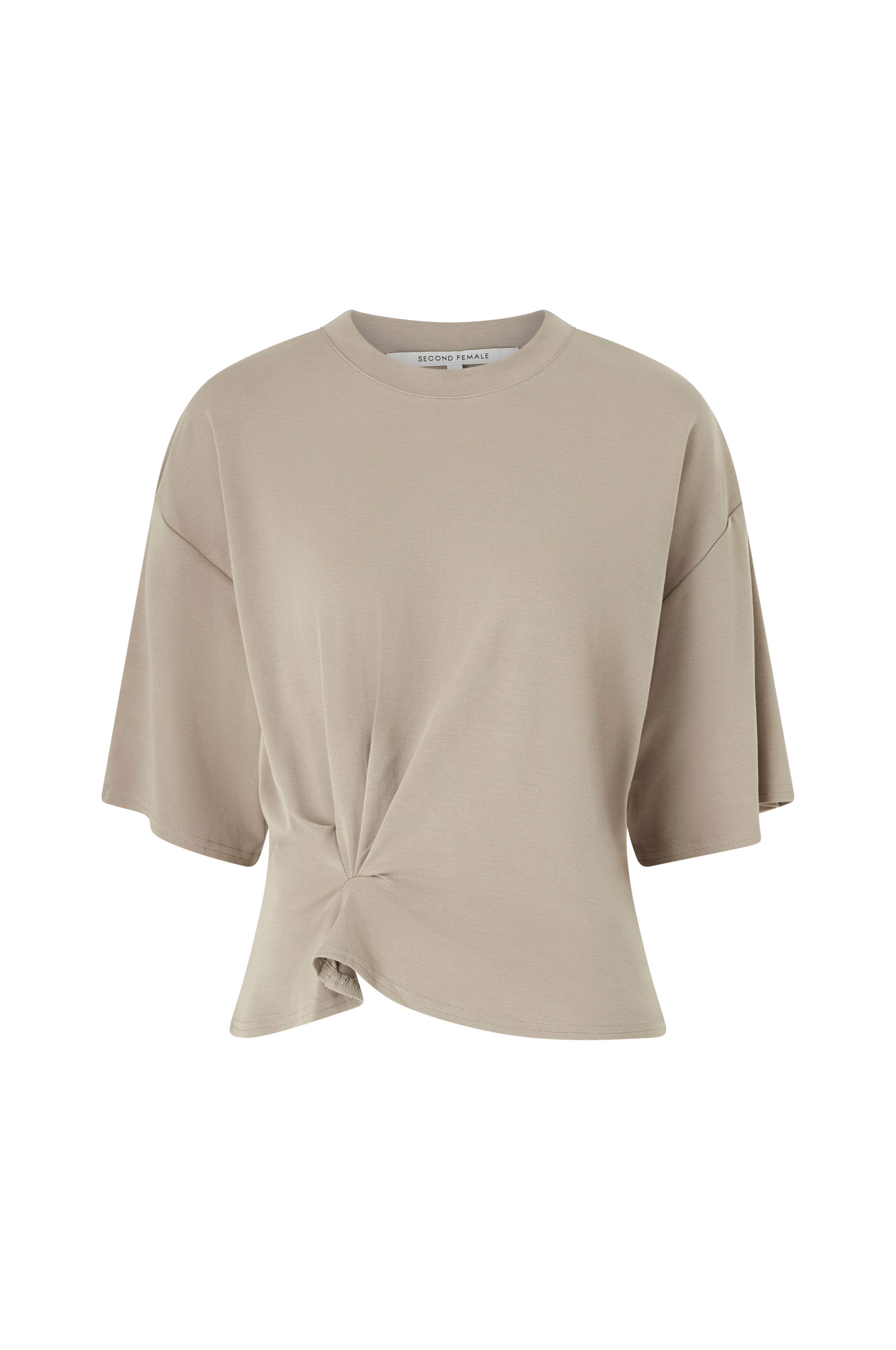 • Model i jersey med drapering nede foran• Rund hals• Nedsænket skulder• Kort ærme