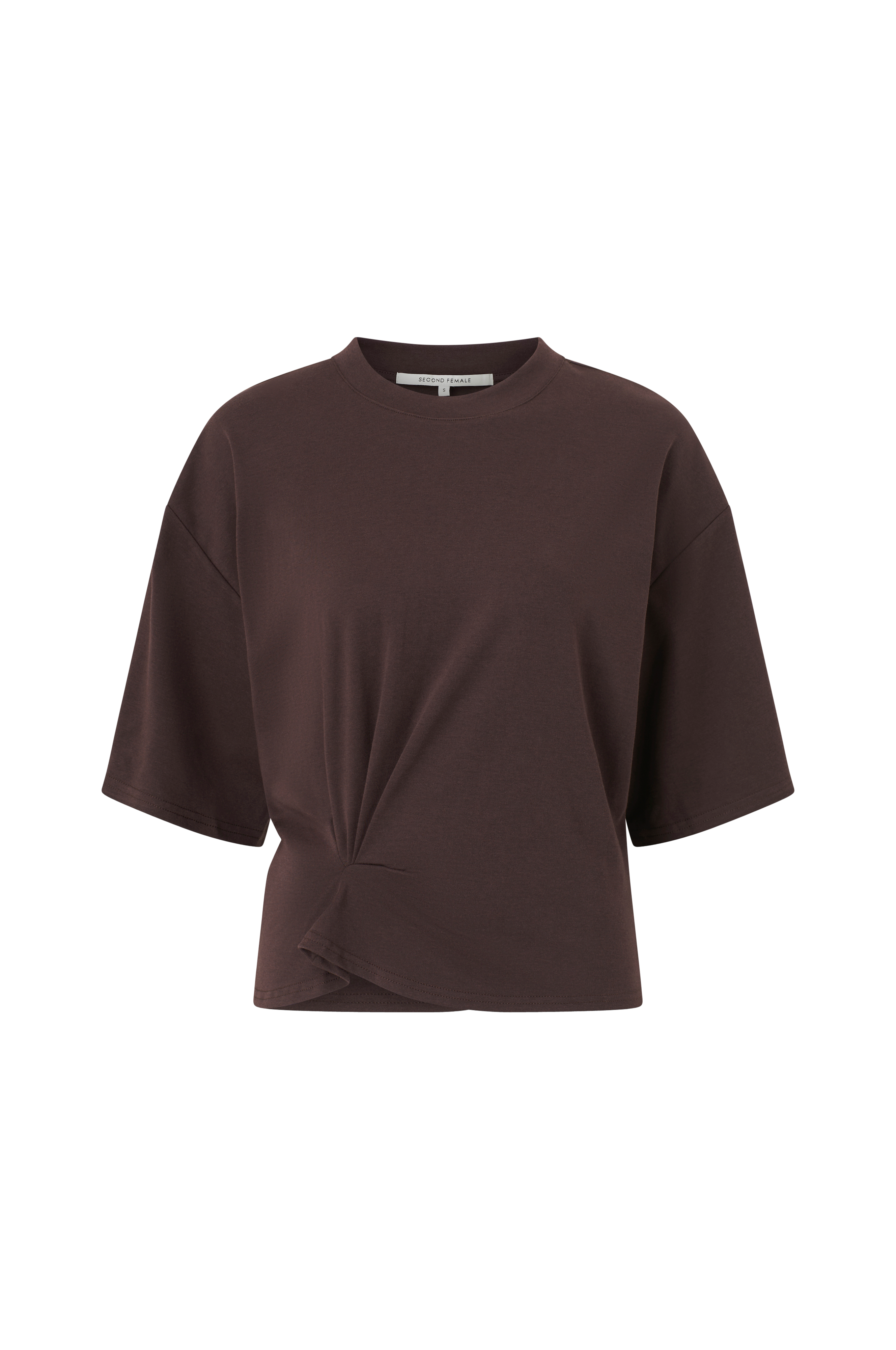 • Model i jersey med drapering nede foran• Rund hals• Nedsænket skulder• Kort ærme