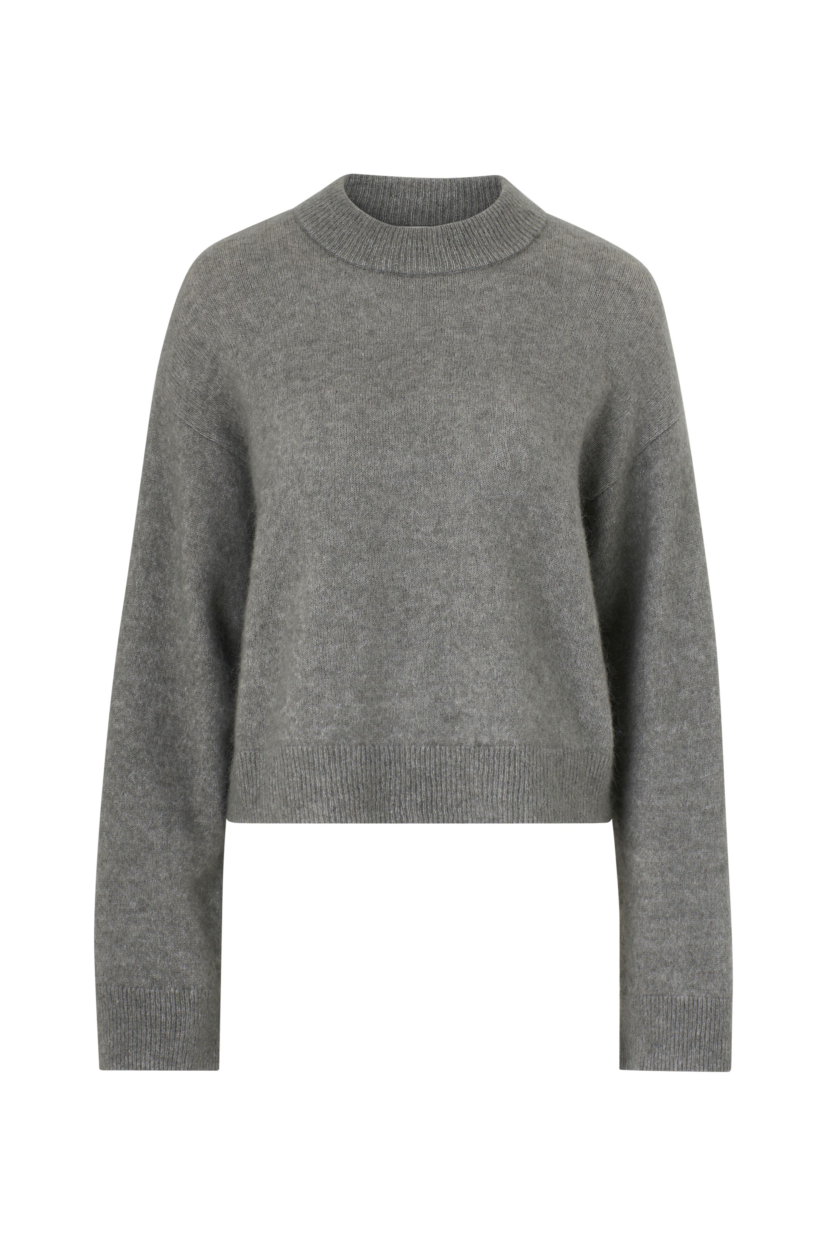 • Strikket trøje i blød kvalitet med mohair og uld• Rund, ribbet halsudskæring• Nedsænkede skuldre• Ribstrik ved manchetterne og nederst