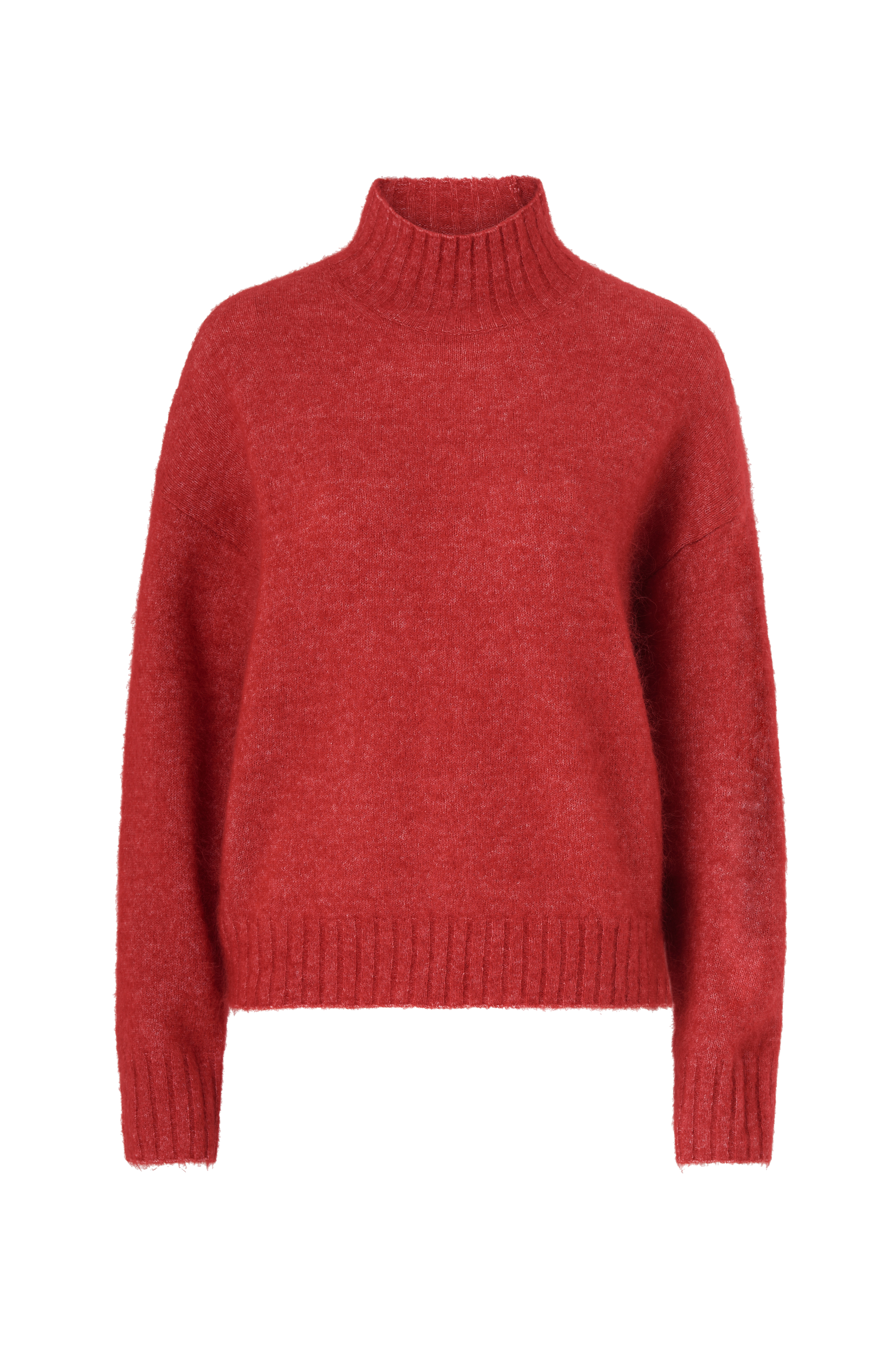 • Bred model• Høj, ribstrikket krave• Nedsænket skulder• Ekstra langt ærme med ribstrik ved manchetterne• Ribstrikket søm