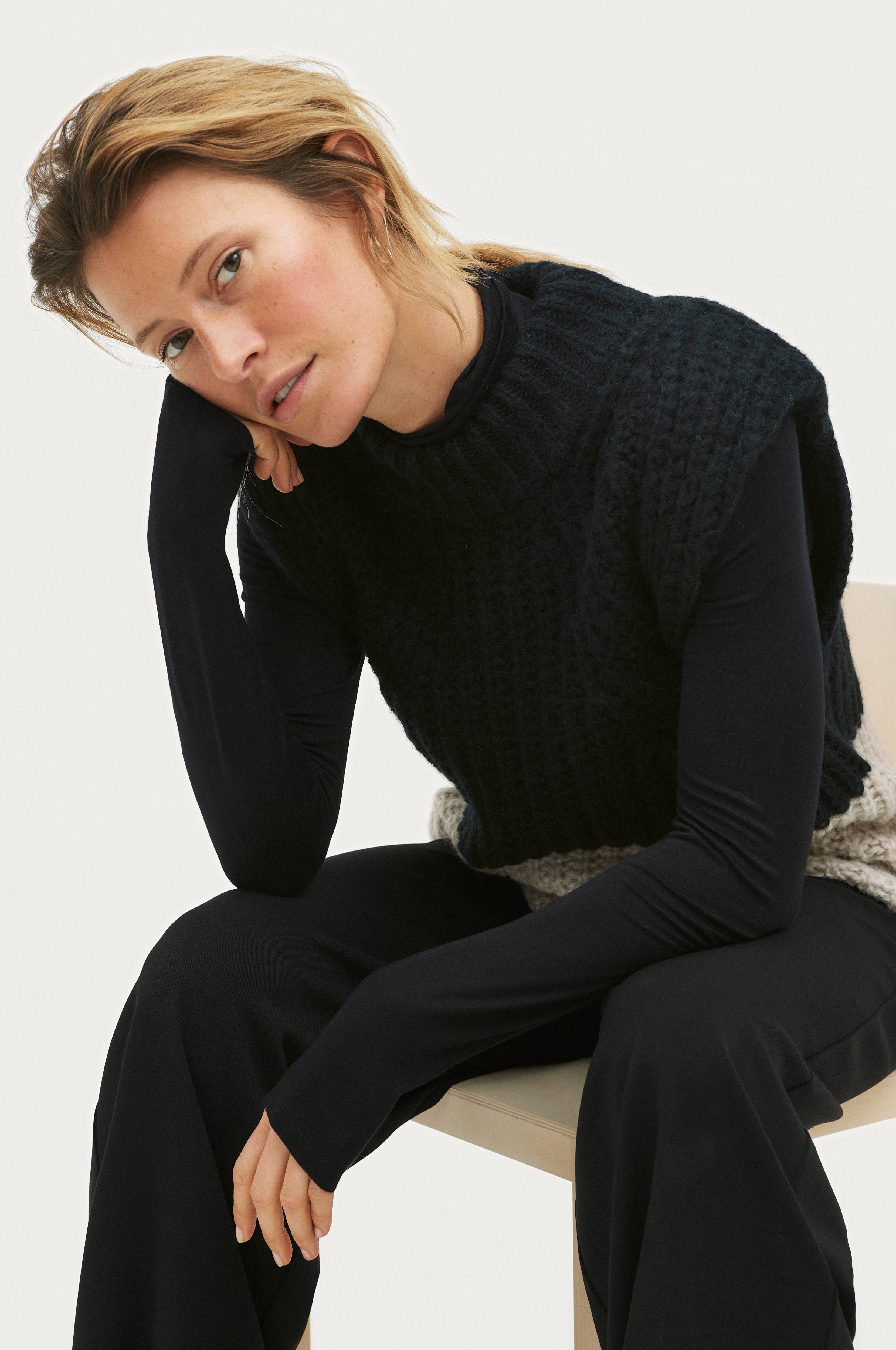 • Strikket, blød vest i alpakablanding• Høj, ribbet halsudskæring