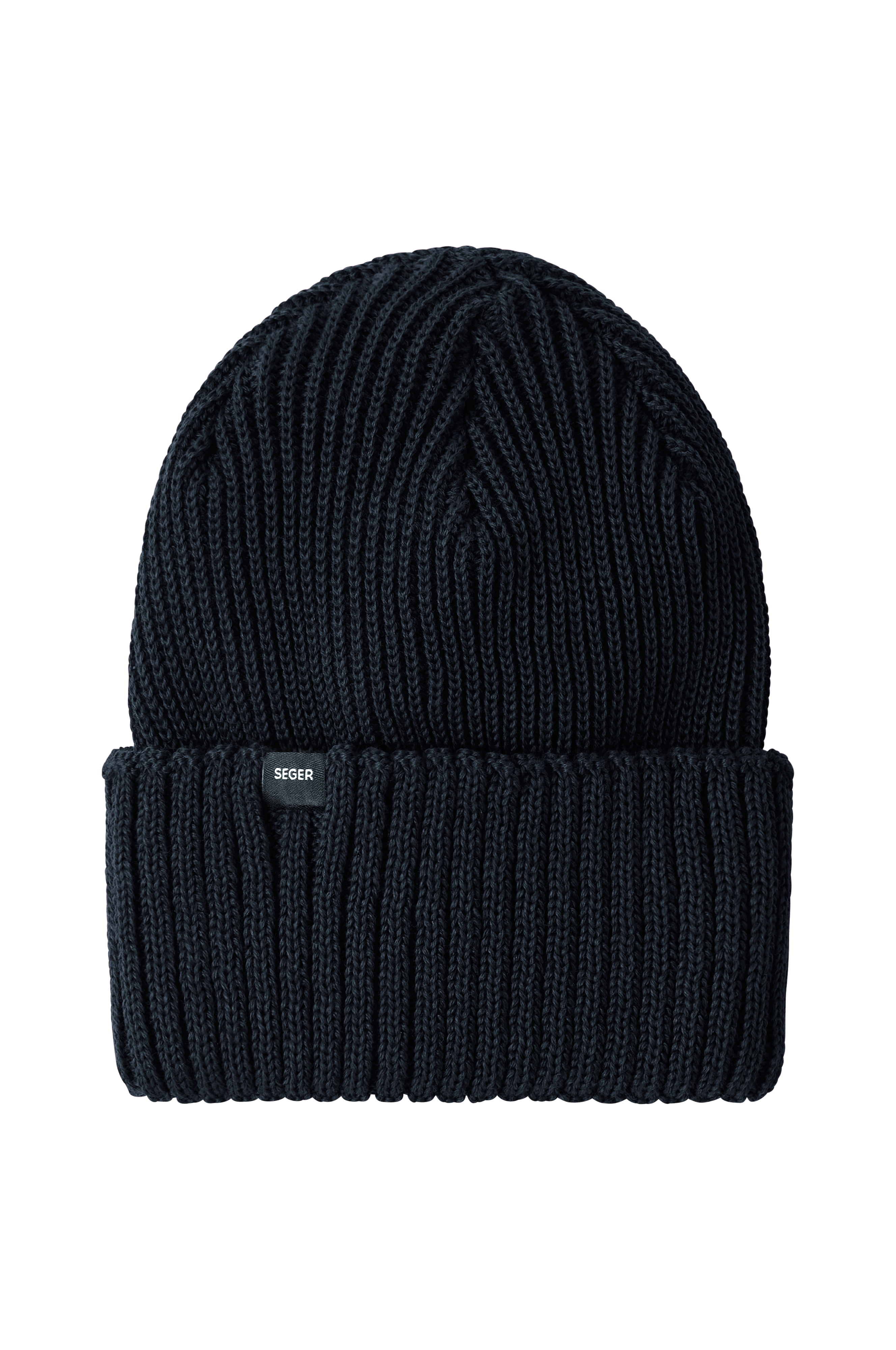 • Ribstrikket hue i merinouldblanding• Foldet søm