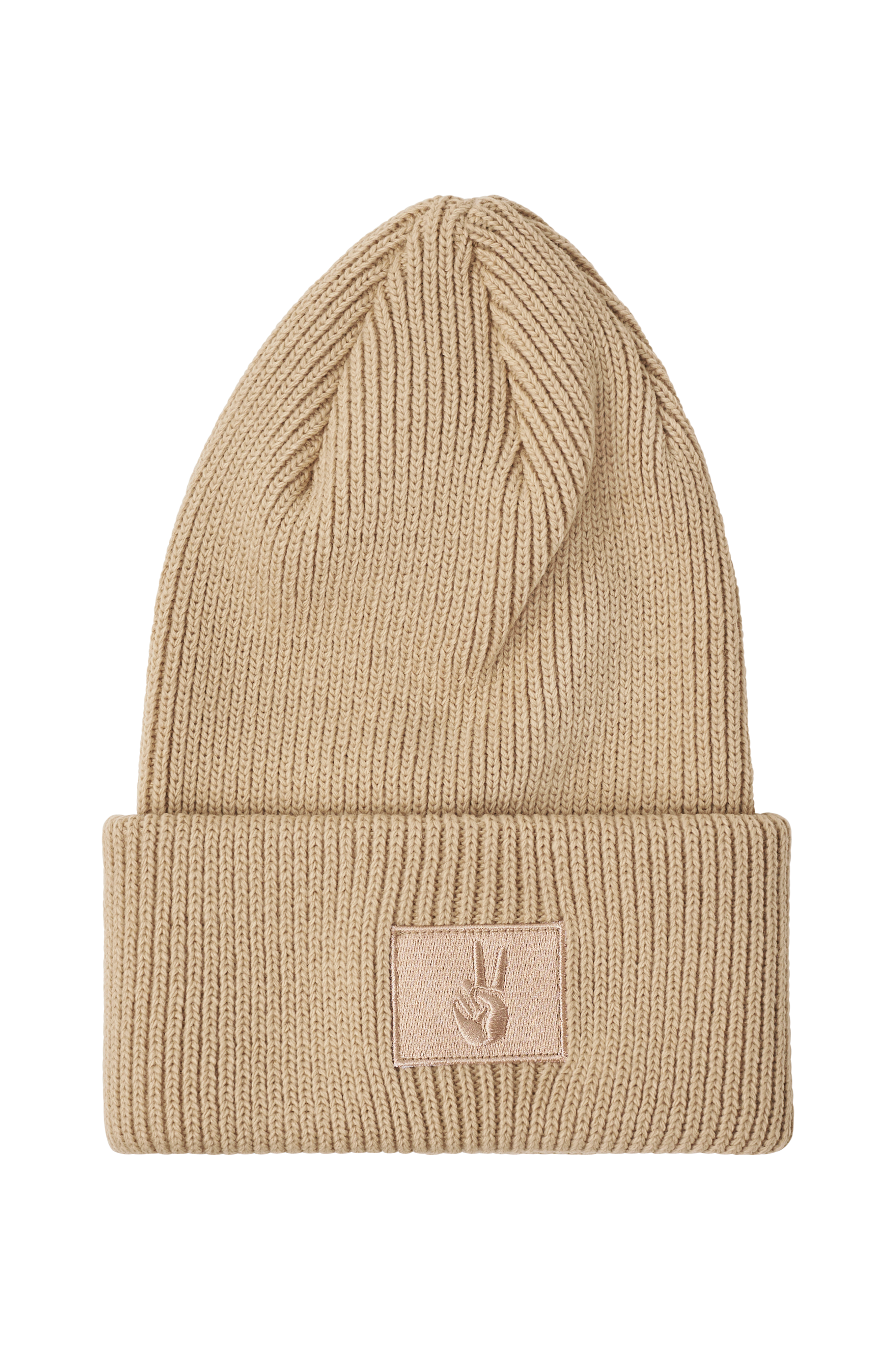 • Ribstrikket hue i uldblanding• Afslappet pasform• Foldet søm med et påsyet logomærke