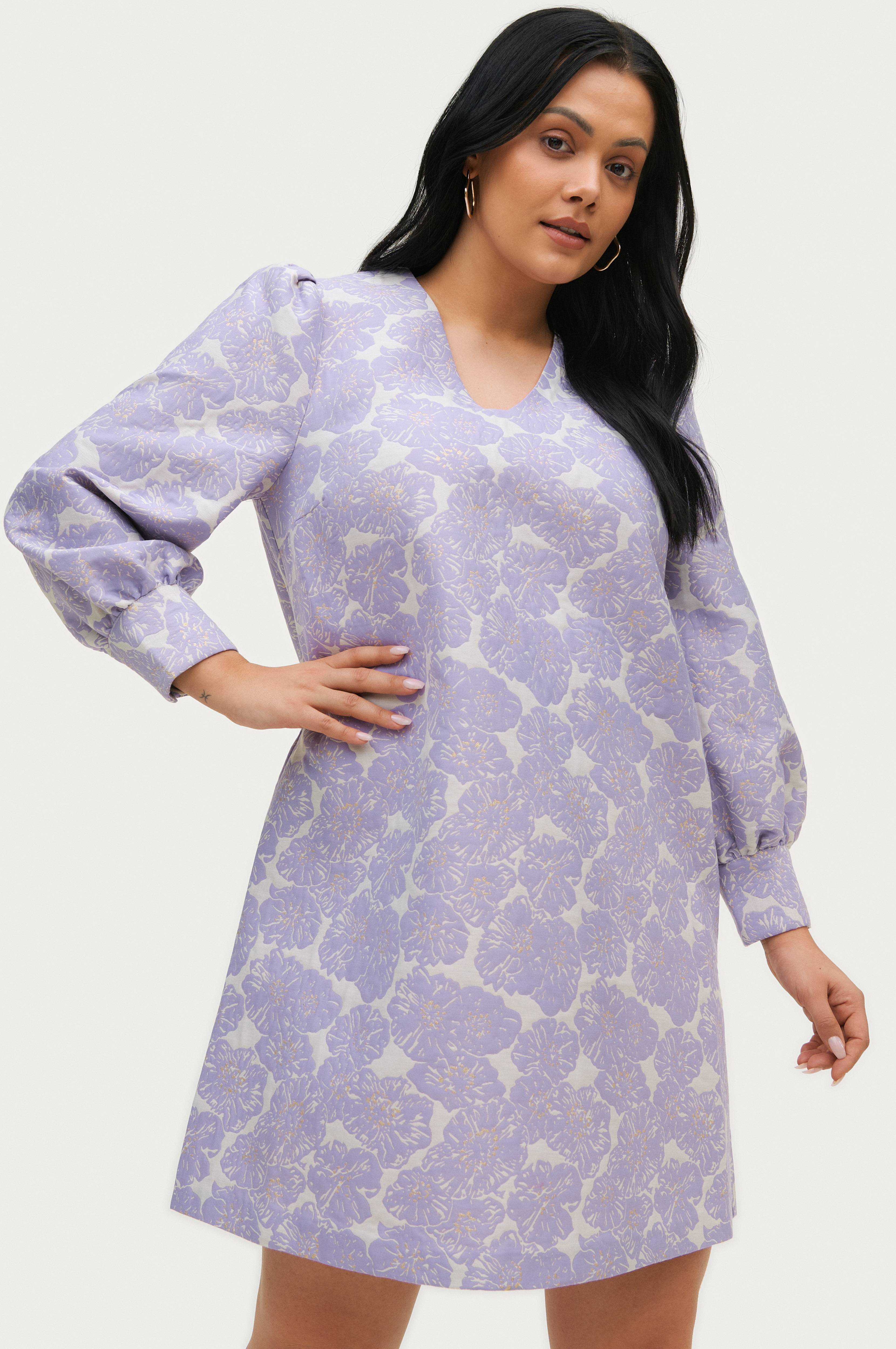 • Bred model med svaj i jacquardvæv• V-formet halsudskæring• Bredt ballonærme med manchet ved manchetterne• Længde: 97 cm i størrelse 44