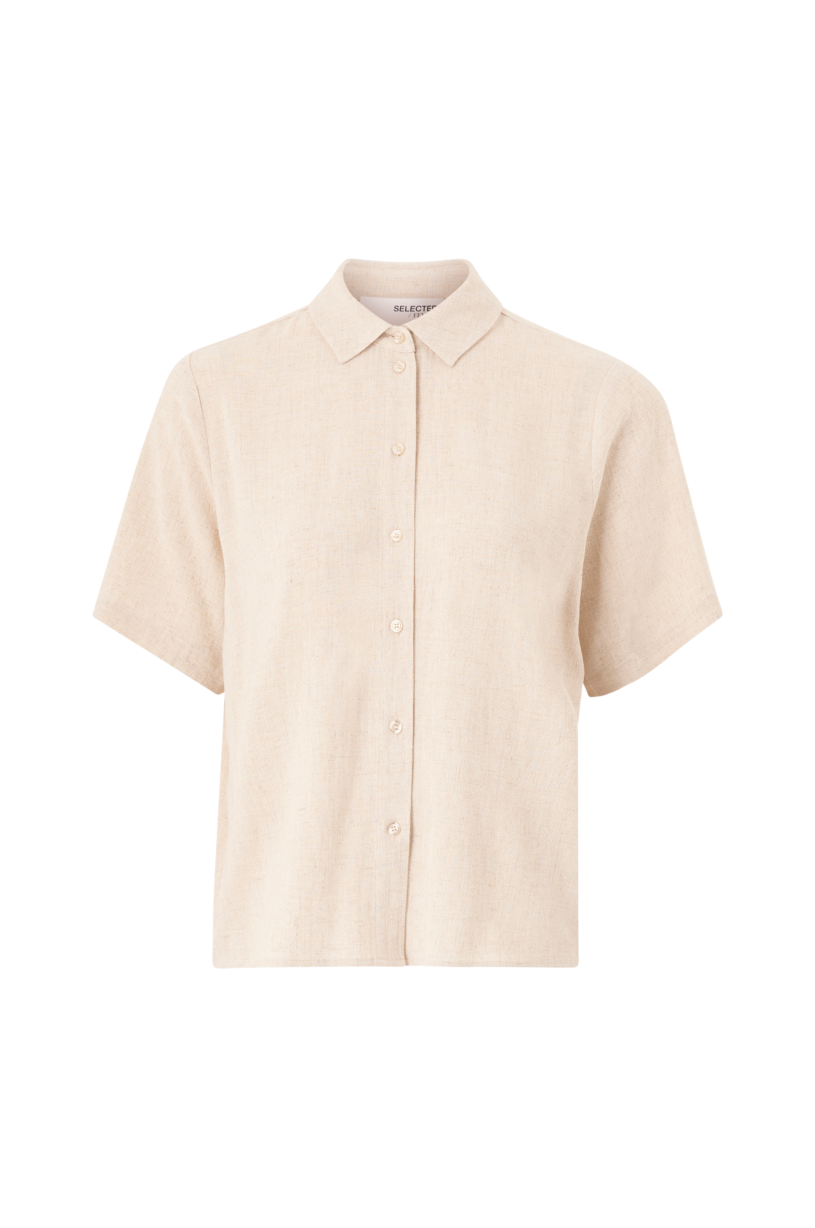 • Bluse i hørblanding• Knapper foran• Korte ærmer