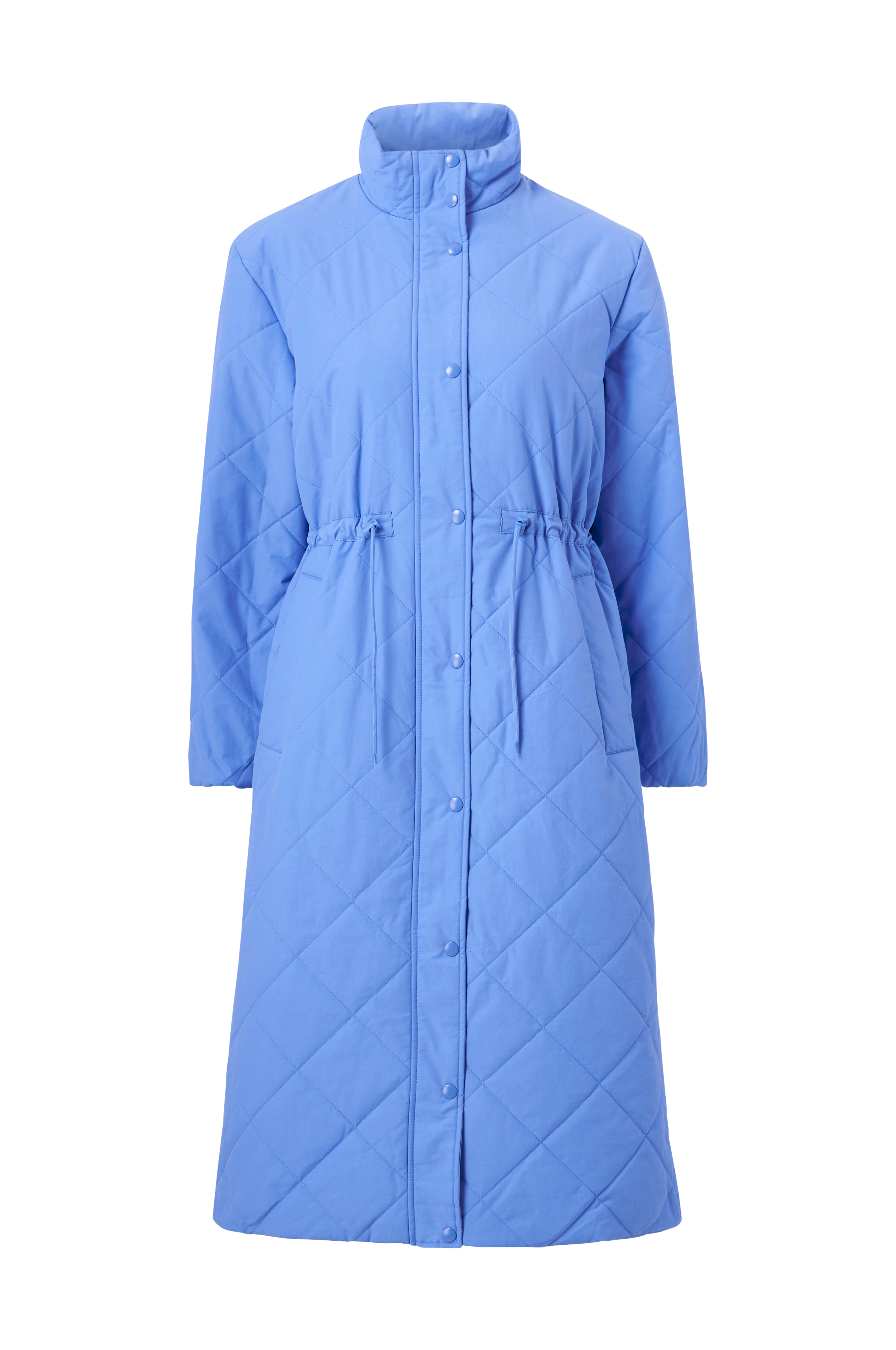 • Quiltet frakke med polstring • To-vejs lynlås foran • Vindflap med trykknapper • Træksnørre ved taljen • To lommer • En inderlomme • Længde: 115 cm i størrelse 36 • Produktet indeholder genindvundet materiale, som genbruges for at reducere mængden af affald samtidigt med at der ikke anvendes nye ressourcer.