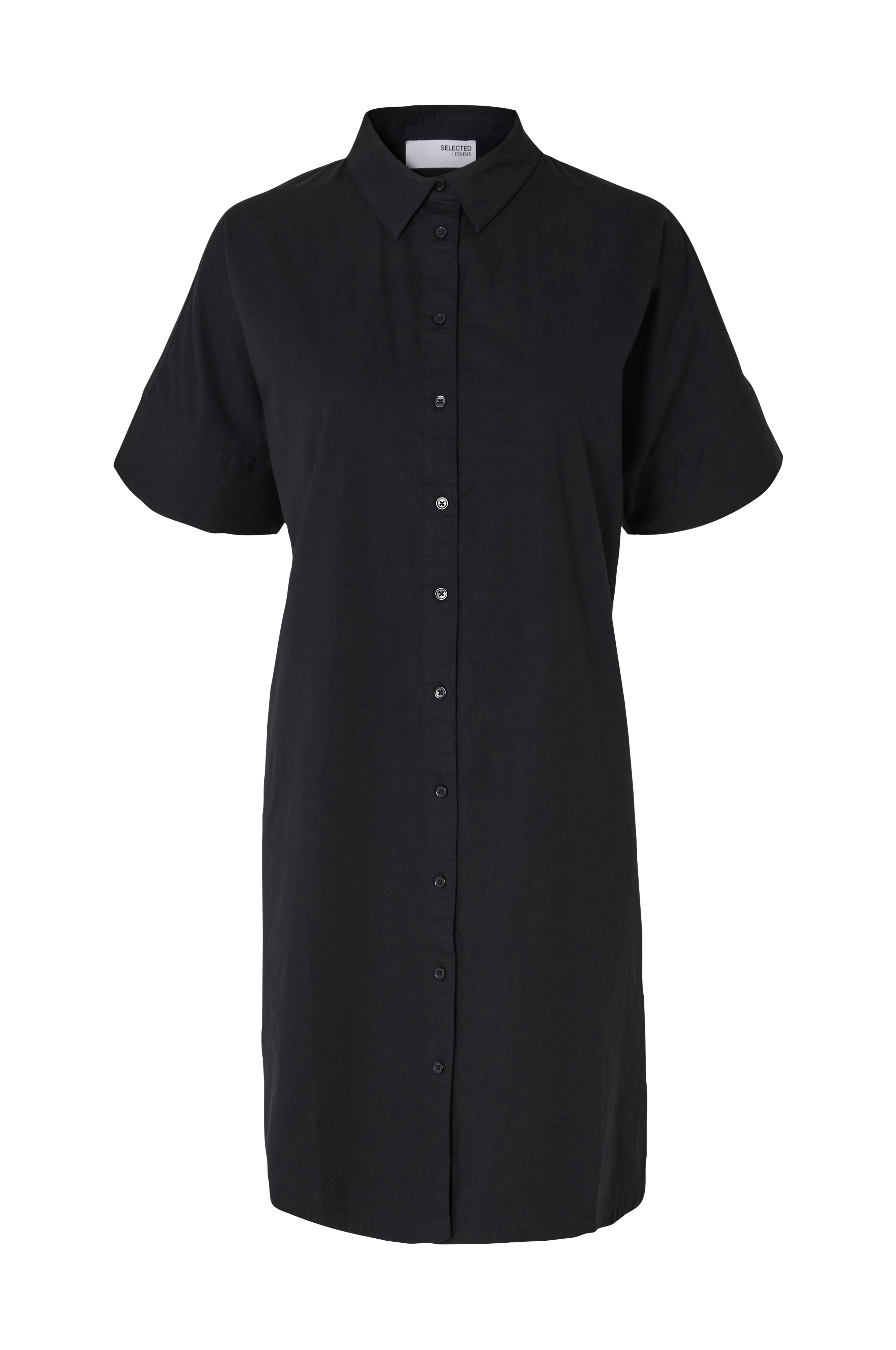 • Skjortekjole i bomuld• Korte ærmer• Knapper hele vejen frem• Sidelommer• Bølgeformet detalje bagpå• Længde: 107 cm i størrelse 36