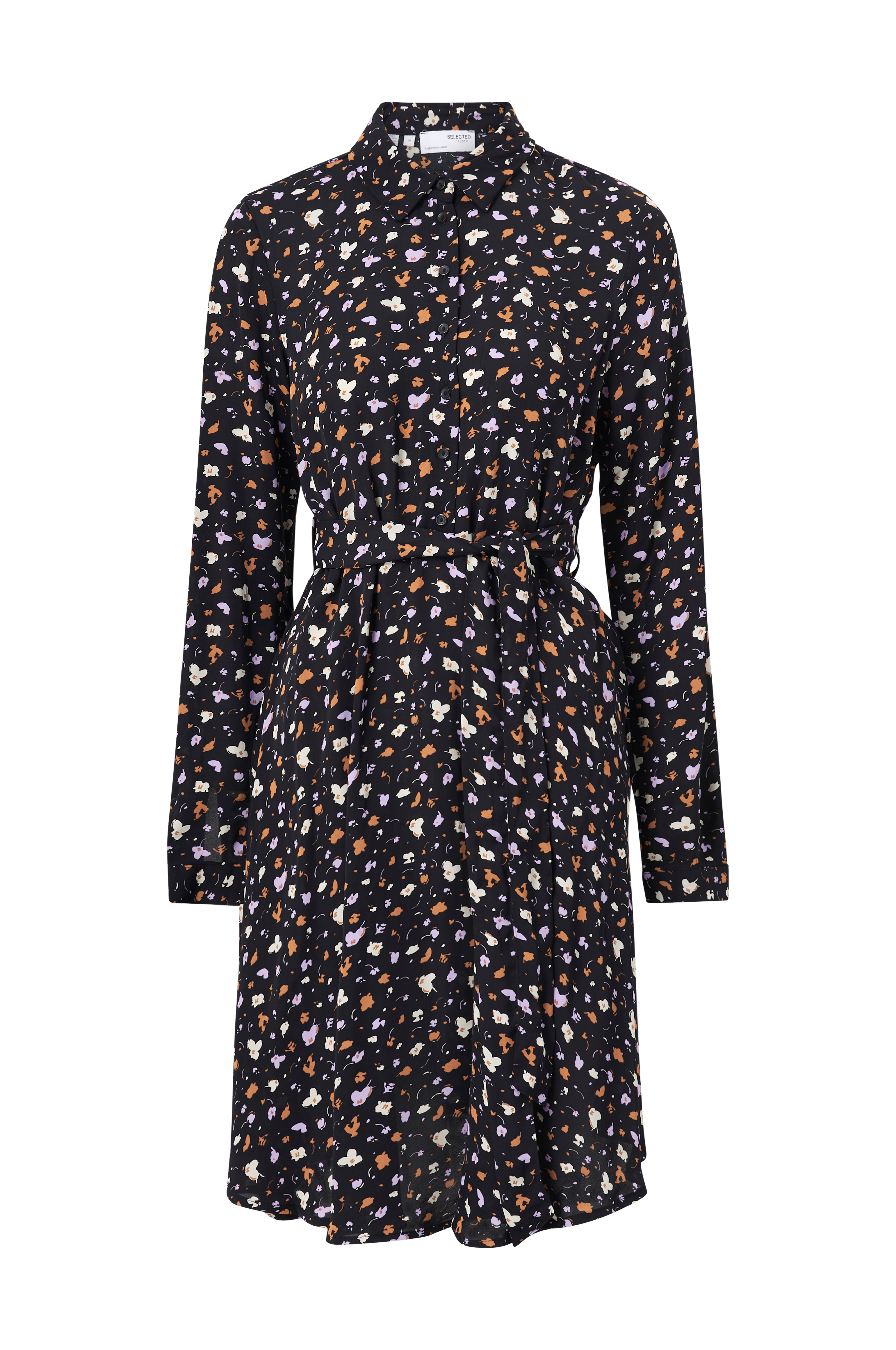 • Figurformede model med bæltestropper og bæltespænde ved taljen• Skjortekrave• Knaplukning foran ned til taljen• Langt ærme med manchet• Længde: 102 cm i størrelse 36