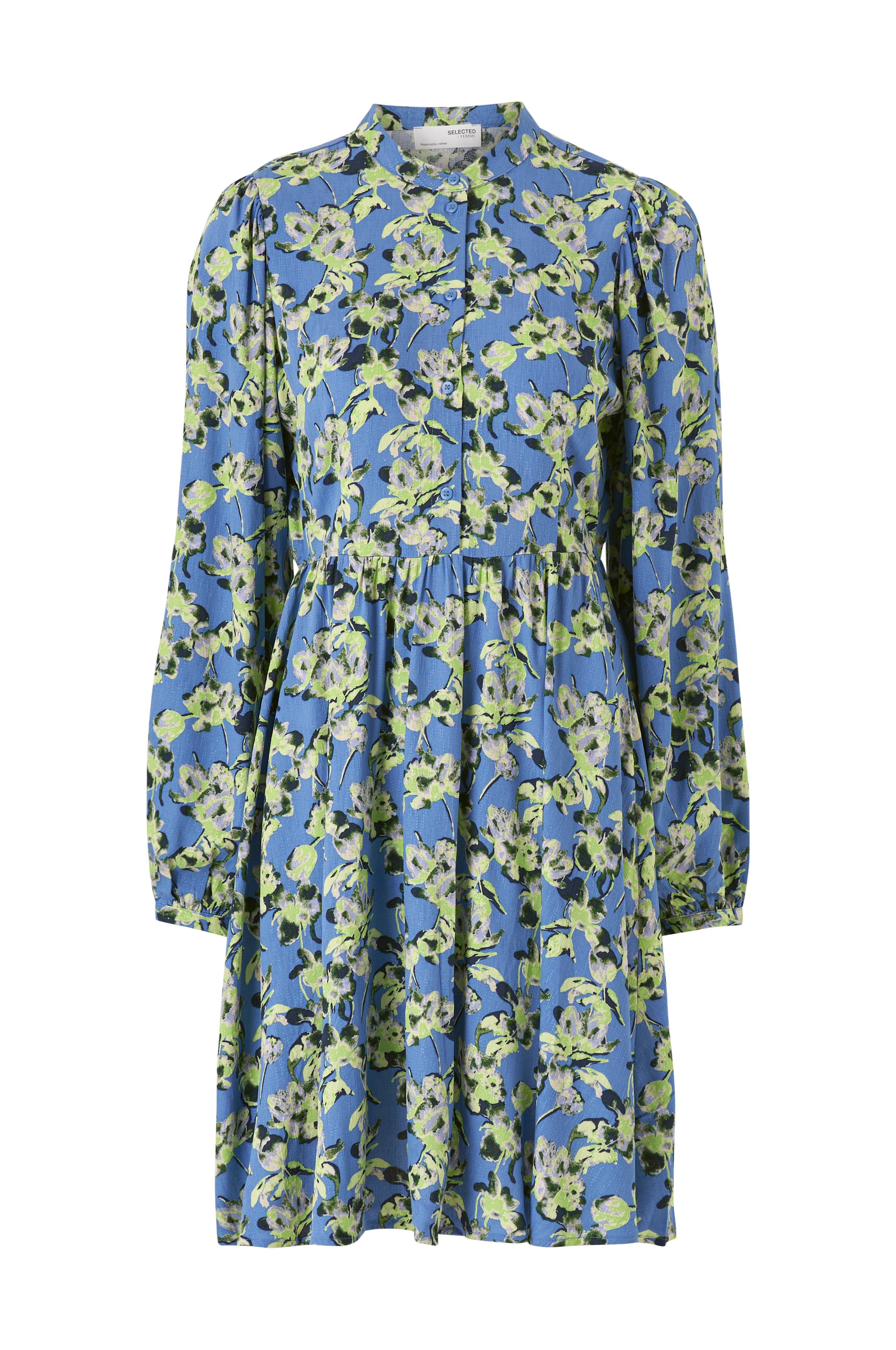 • Kjole i viskose • Rund halsudskæring • Knapper ned til taljen • Ballonærmer med knap ved manchetterne • Elastik ved taljen med samling • Længde: 97 cm i størrelse 36 • Produktet indeholder viskose fra Livaeco by Birla Cellulose™, en syntetisk cellulosefiber af træmasse der kommer fra kontrolleret og ansvarsfuldt skovbrug.