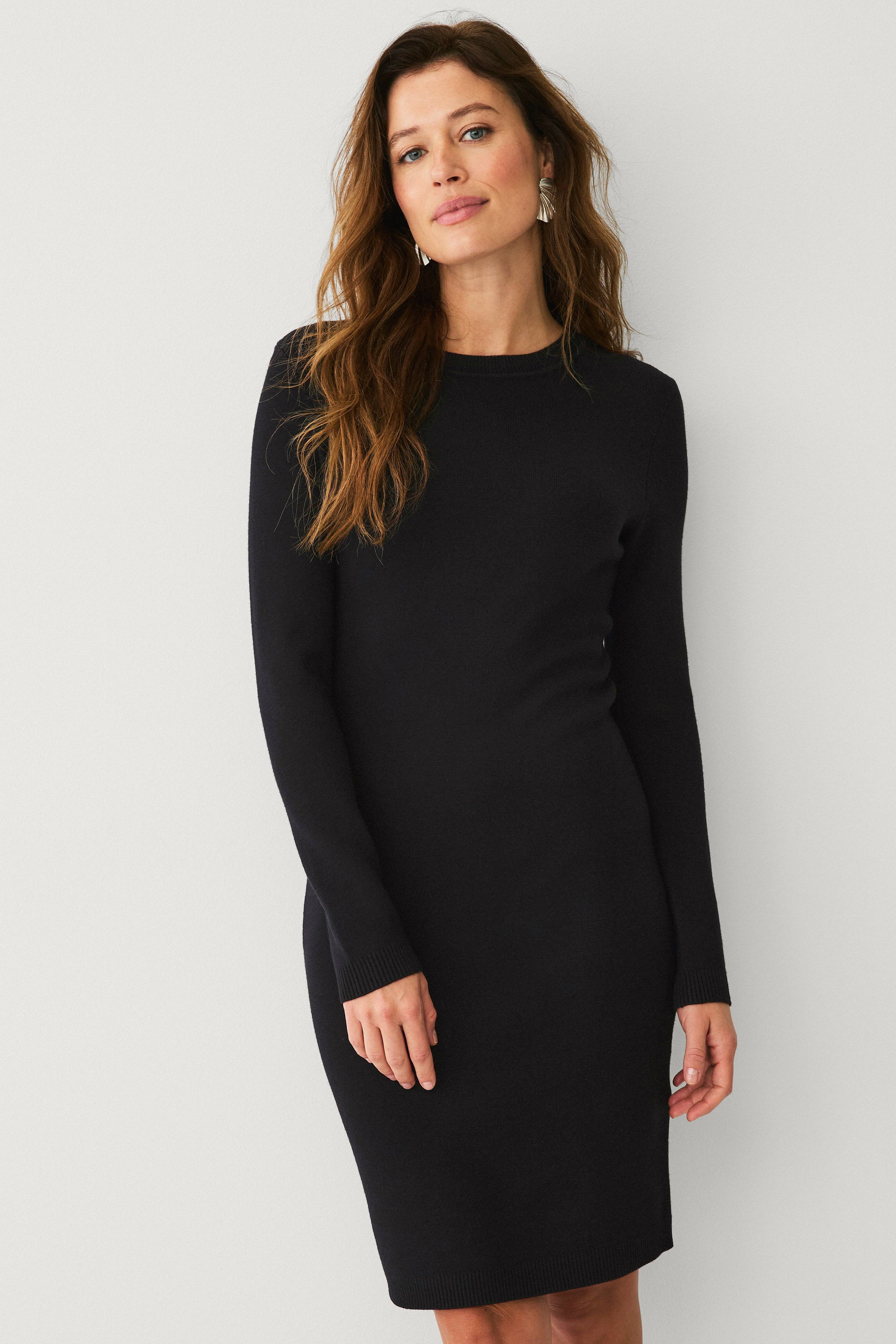 • Strikket kjole• Rund, ribbet halsudskæring• Lange ærmer• Ribstrik ved manchetterne og nederst• Længde: 99 cm i størrelse S