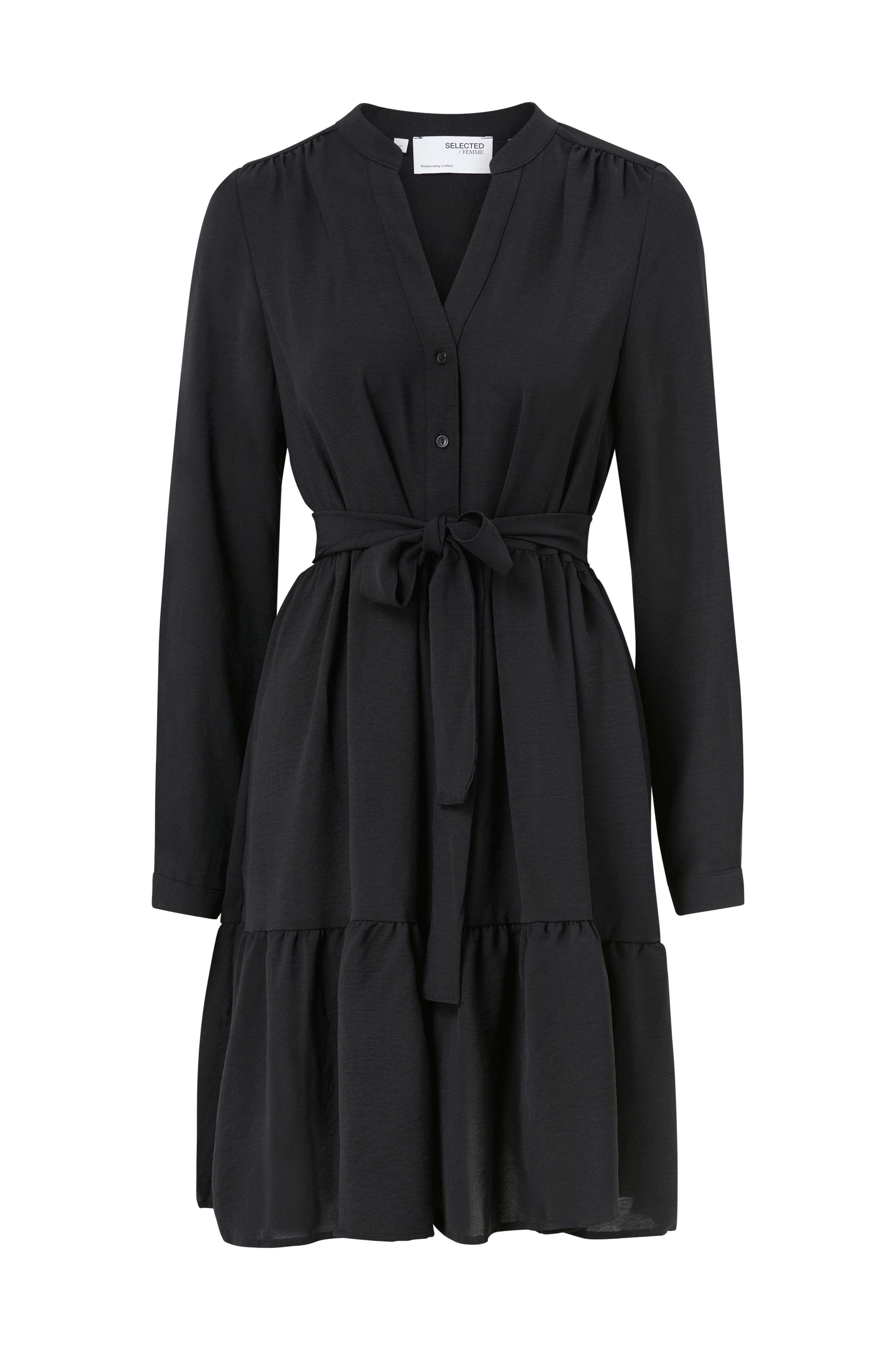 • V-hals• Langt ærme med smal manchet• Knapper oppe foran• Nederdel med volant• Bæltespænde ved taljen• Længde: 96 cm i størrelse 36