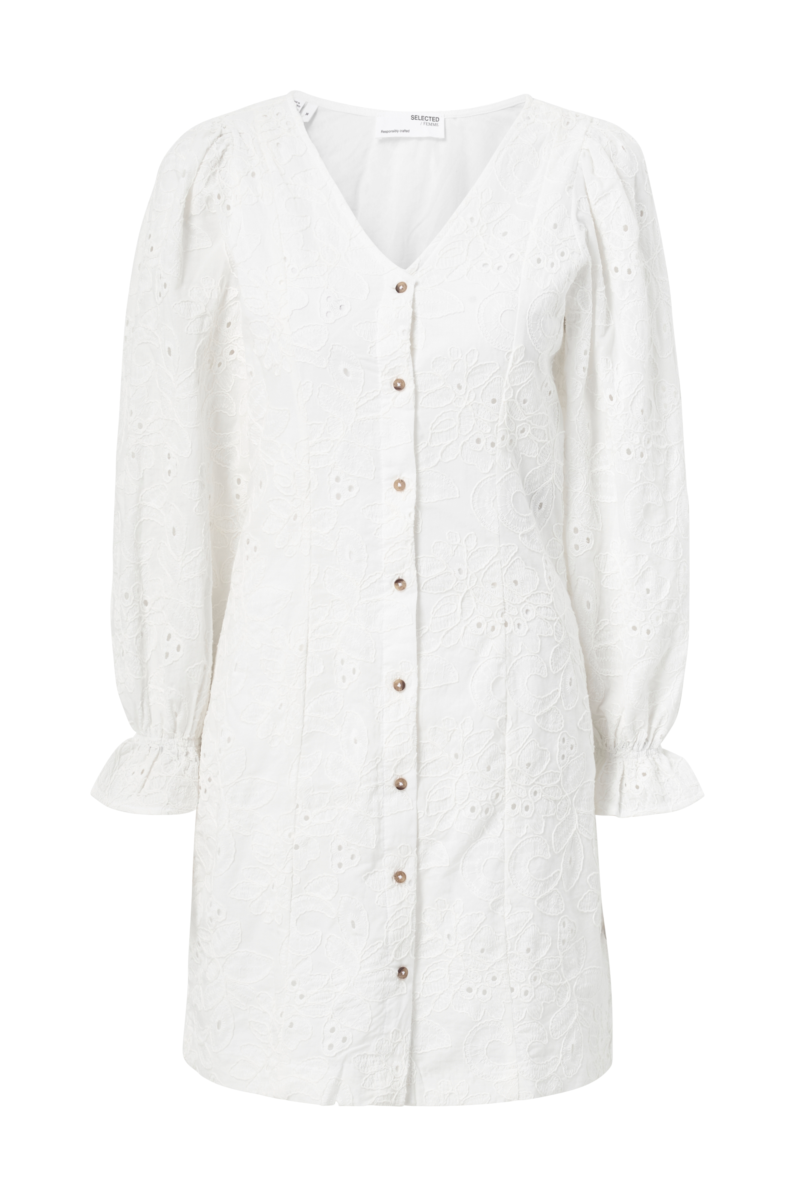 • Figurformede model med broderier overalt• V-formet halsudskæring• Knapstolpe hele vejen frem• Bredt ballonærme med elastisk bånd nederst• Foret• Længde: 90 cm i størrelse 36
