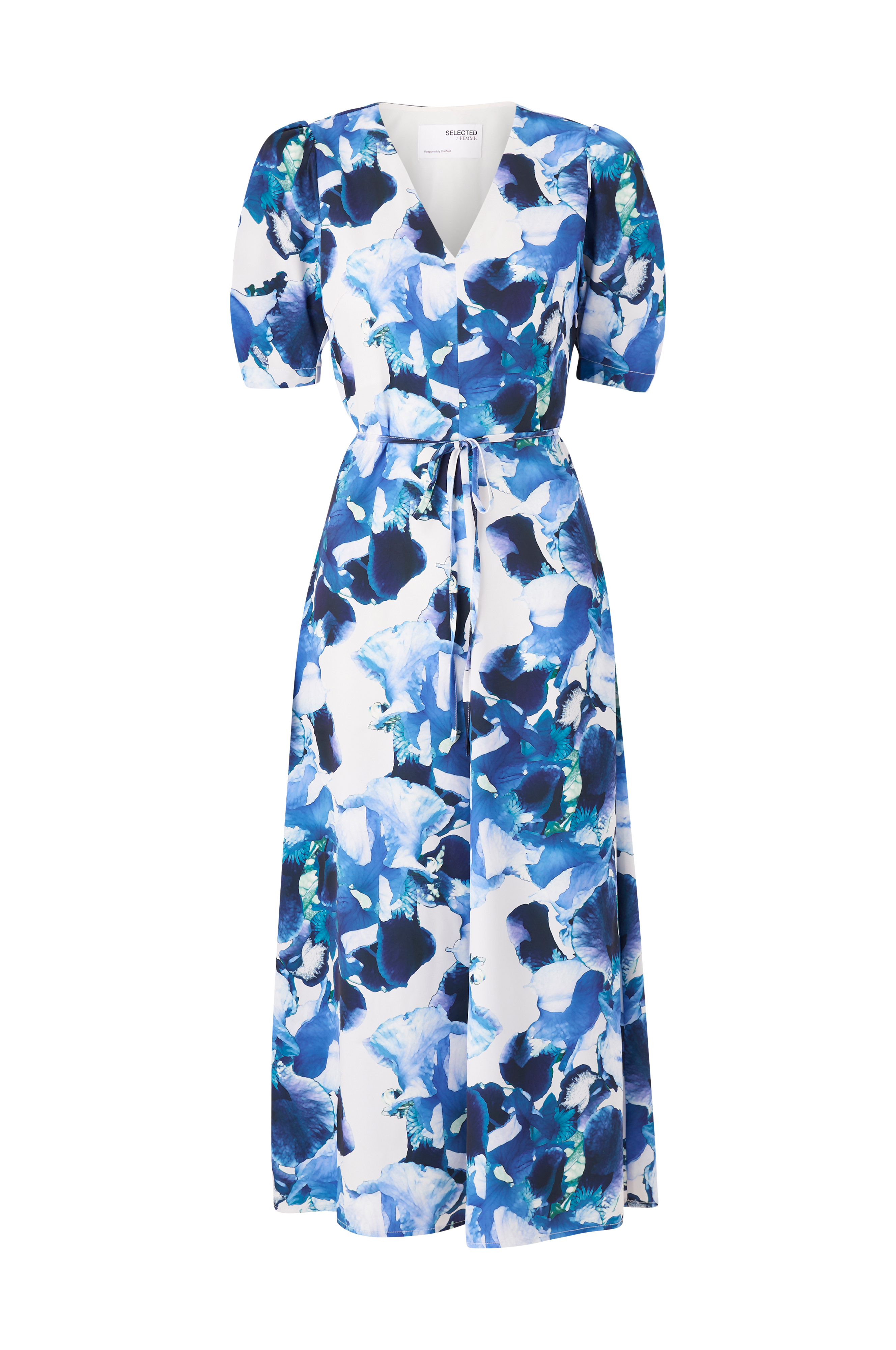 • Kjole i satin • V-udskæring • Korte ballonærmer • Skjult lynlås i siden • Tyndt bindebælte ved taljen • Længde: 131 cm i størrelse 36 • Produktet indeholder genindvundet materiale, som genbruges for at reducere mængden af affald samtidigt med at der ikke anvendes nye ressourcer.