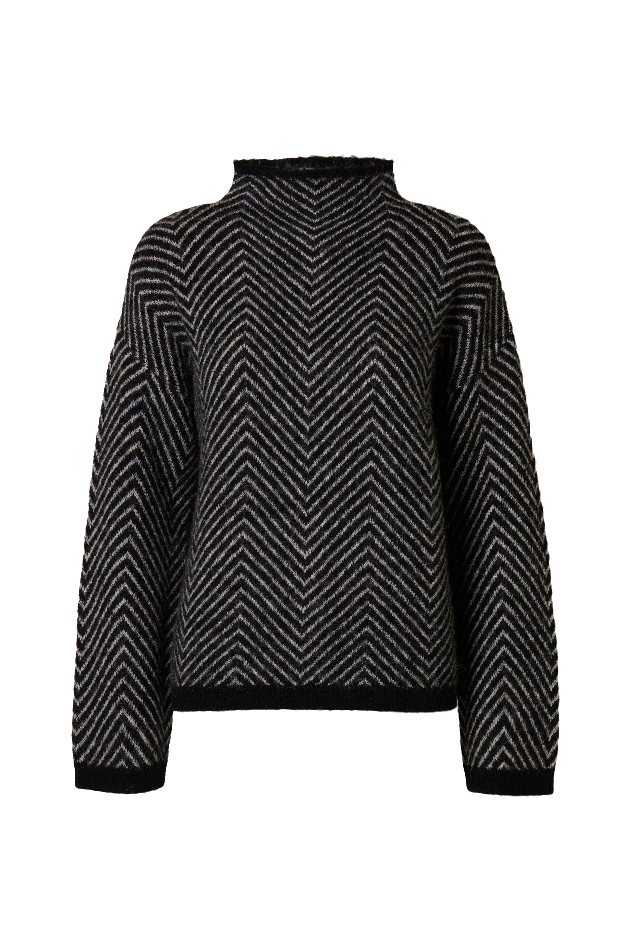 • Fintstrikket trøje med lange arme og Sildebent mønster• Rund, afrundet, ribstrikket halsudskæring• Ribstrik ved manchetterne og nederst• Nedsænket skulder
