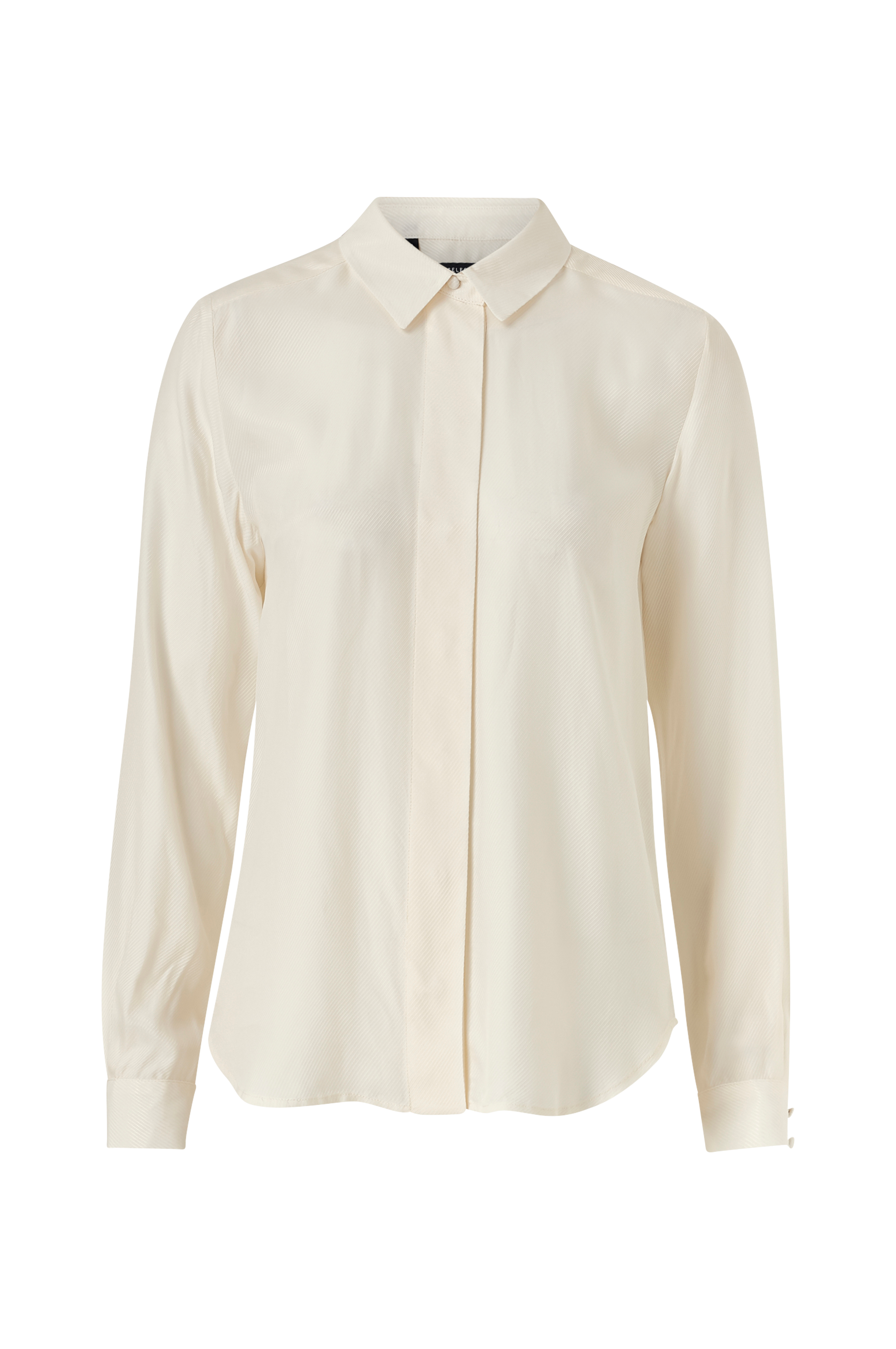 Skjorte slfArabella-Odette LS Shirt fra Selected Femme i tynd, vævet kvalitet med diskret stribestruktur og glans. Skjult stolpelukning foran og lange ærmer med manchet og betrukne knapper. Afrundet kant forneden som er længere bagpå.