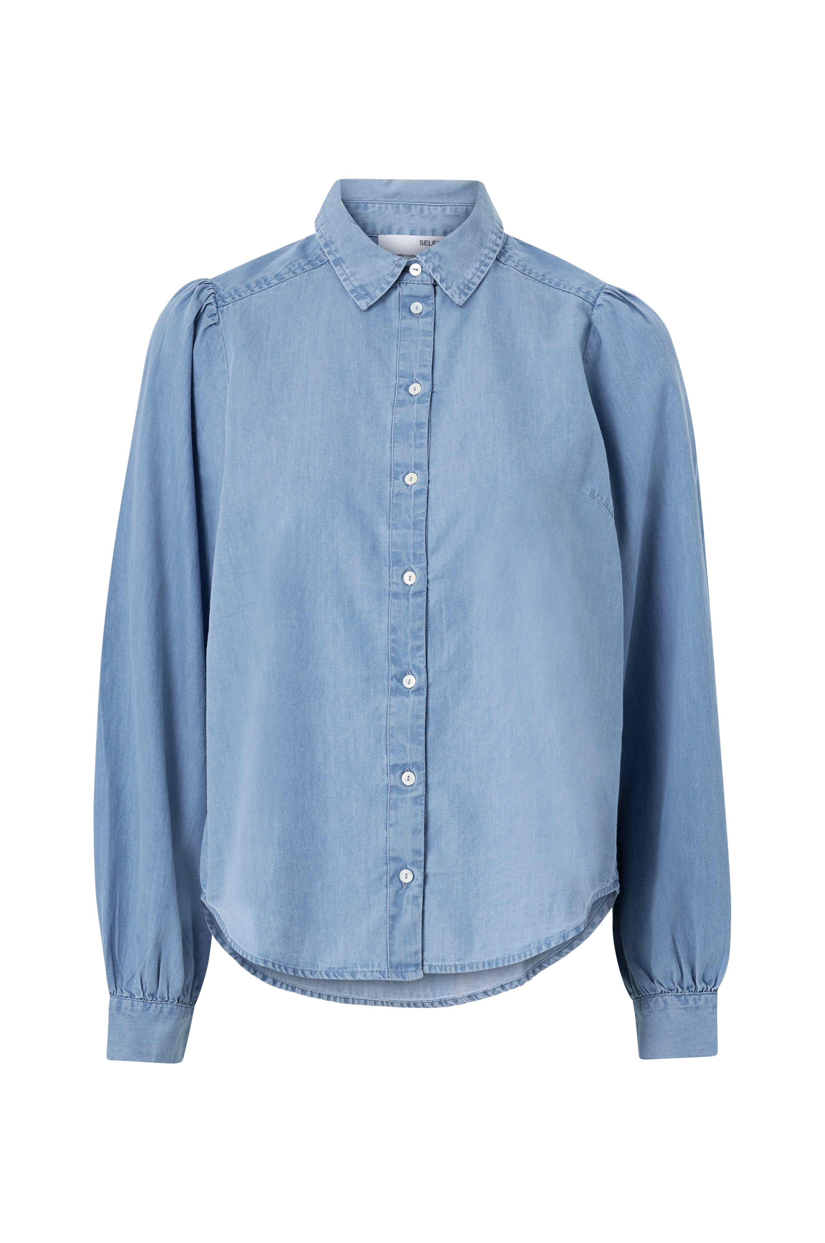 • Brede ballonærmer med manchet• Knapper foran• Afrundet søm