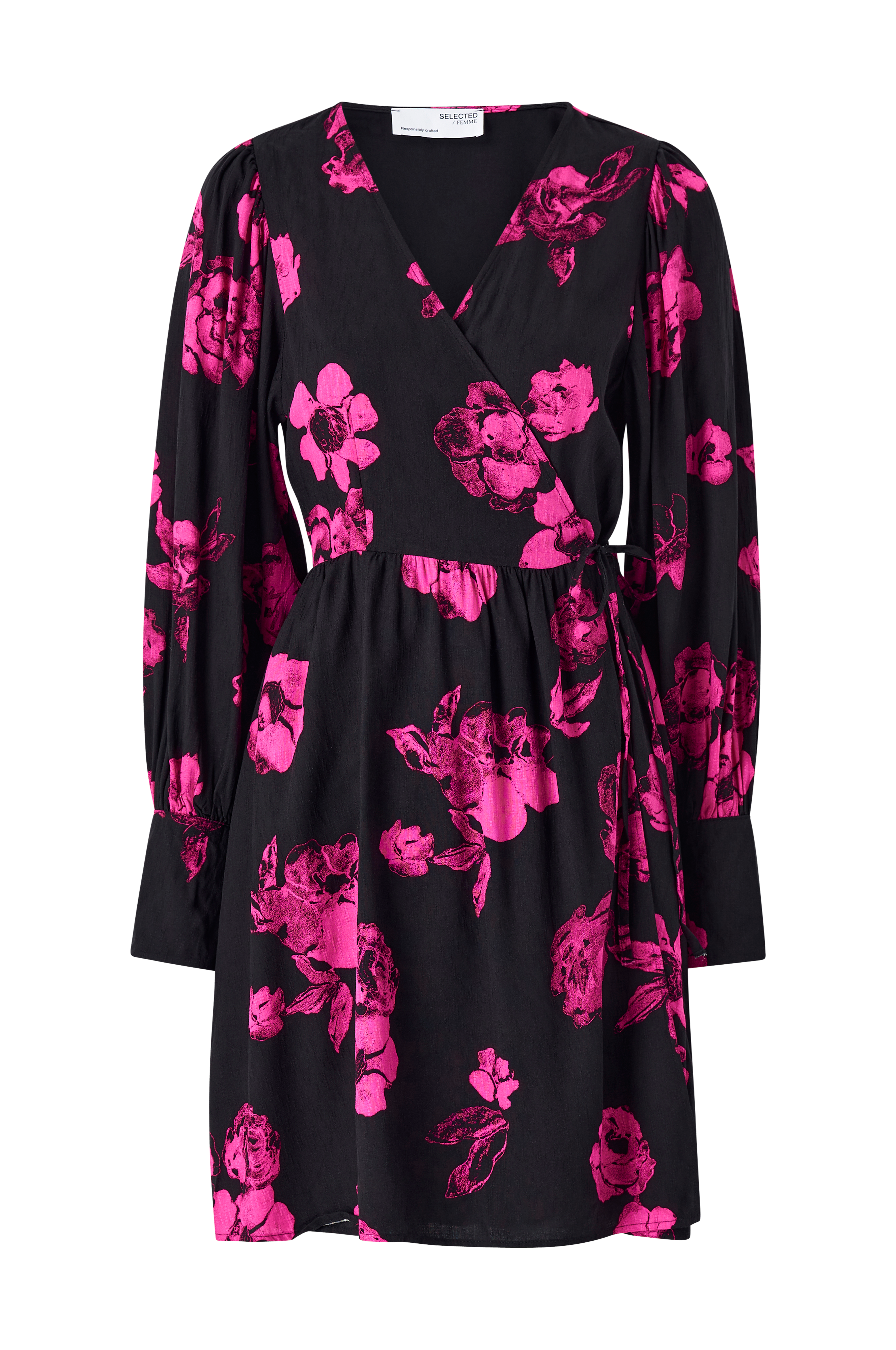 • Slå-om design med bindebånd i siden • Lange ballonærmer med manchet ved manchetterne • Rynket talje • Længde: 95 cm i størrelse 36 • Produktet indeholder viskose fra Livaeco by Birla Cellulose™, en syntetisk cellulosefiber af træmasse der kommer fra kontrolleret og ansvarsfuldt skovbrug.