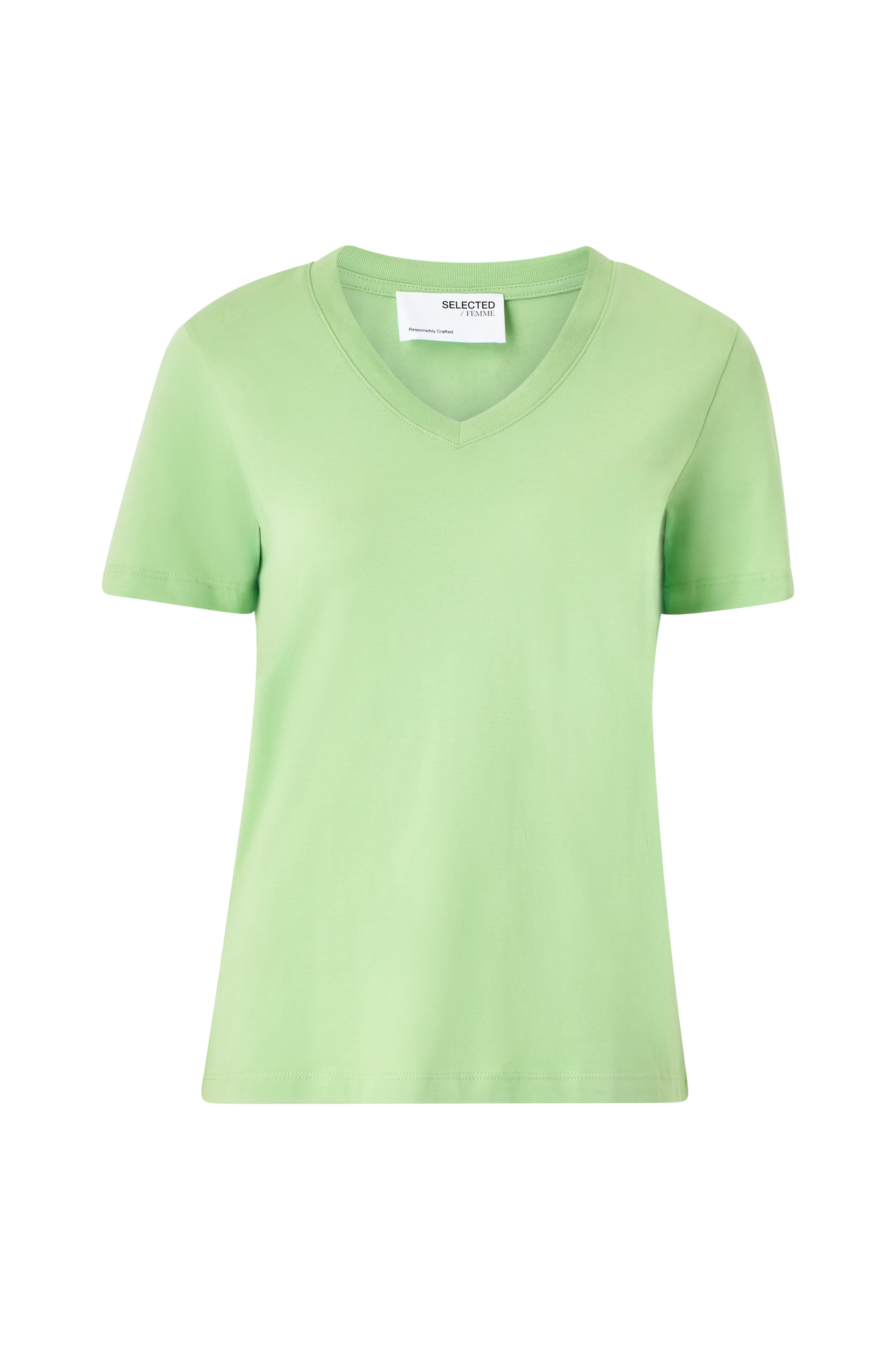• Kort ærme• V-formet halsudskæring med ribkant• Produktet indeholder økologisk bomuld, som er dyrket uden kemiske sprøjtemidler, kunstgødning og genmodificerede afgrøder (GMO). Dette betyder et sundere arbejdsmiljø for landmænd og bedre jord.