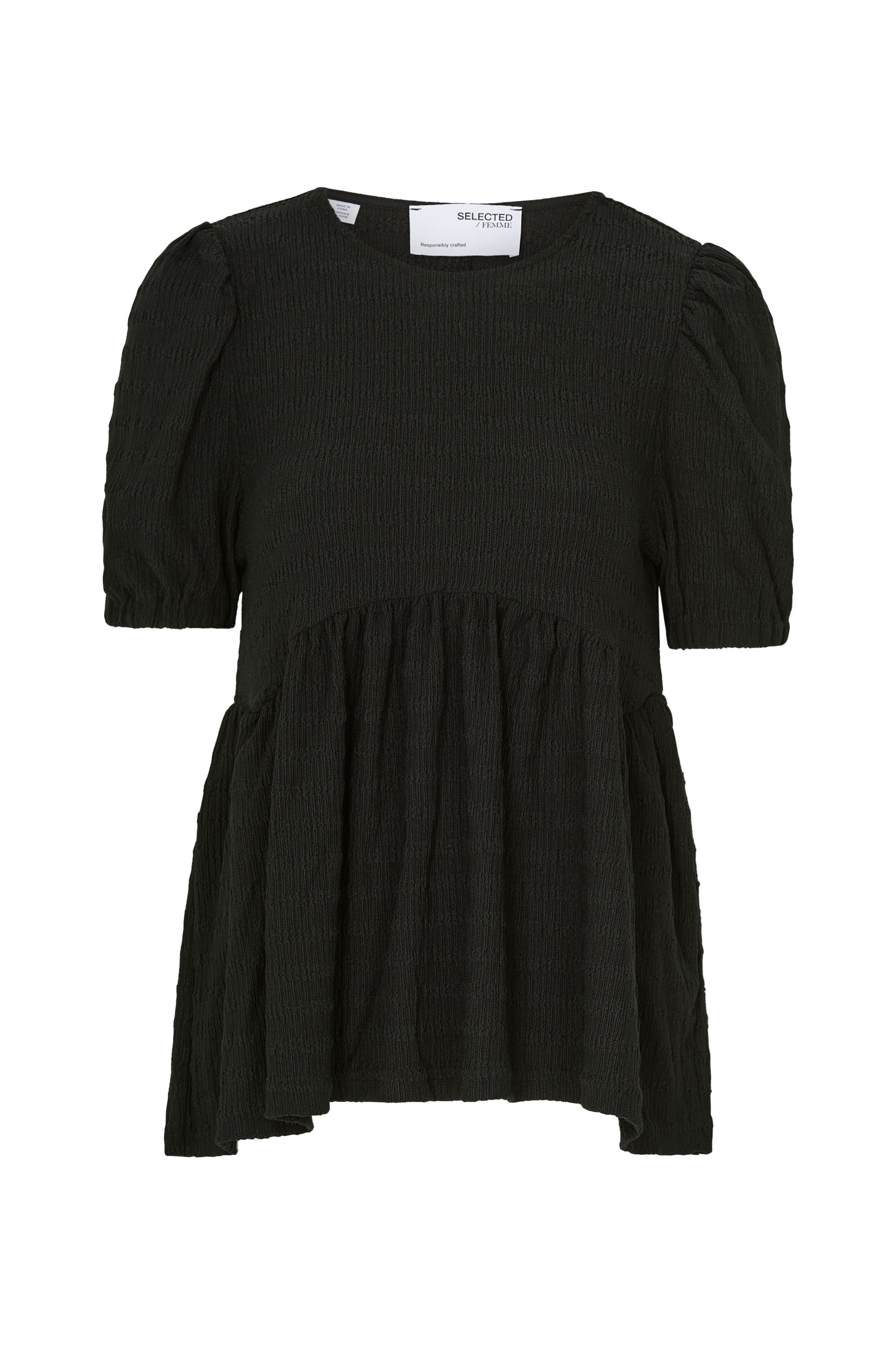• Peplumdesign• Korte ballonærmer• Rynket udskæring ved taljen• Mønstervævet jersey• Produktet indeholder genindvundet materiale, som genbruges for at reducere mængden af affald samtidigt med at der ikke anvendes nye ressourcer.