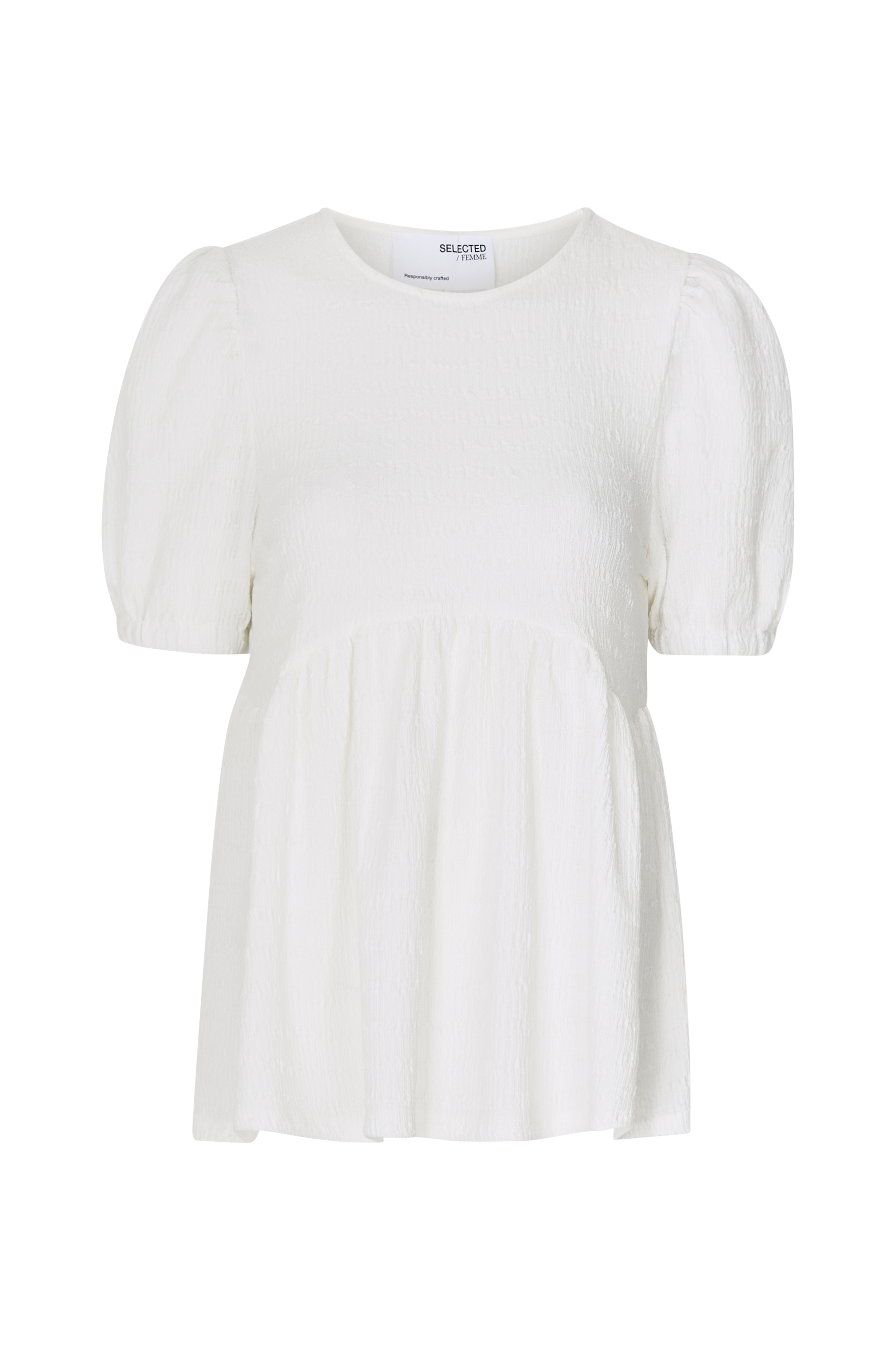 • Peplumdesign• Korte ballonærmer• Rynket udskæring ved taljen• Mønstervævet jersey• Produktet indeholder genindvundet materiale, som genbruges for at reducere mængden af affald samtidigt med at der ikke anvendes nye ressourcer.
