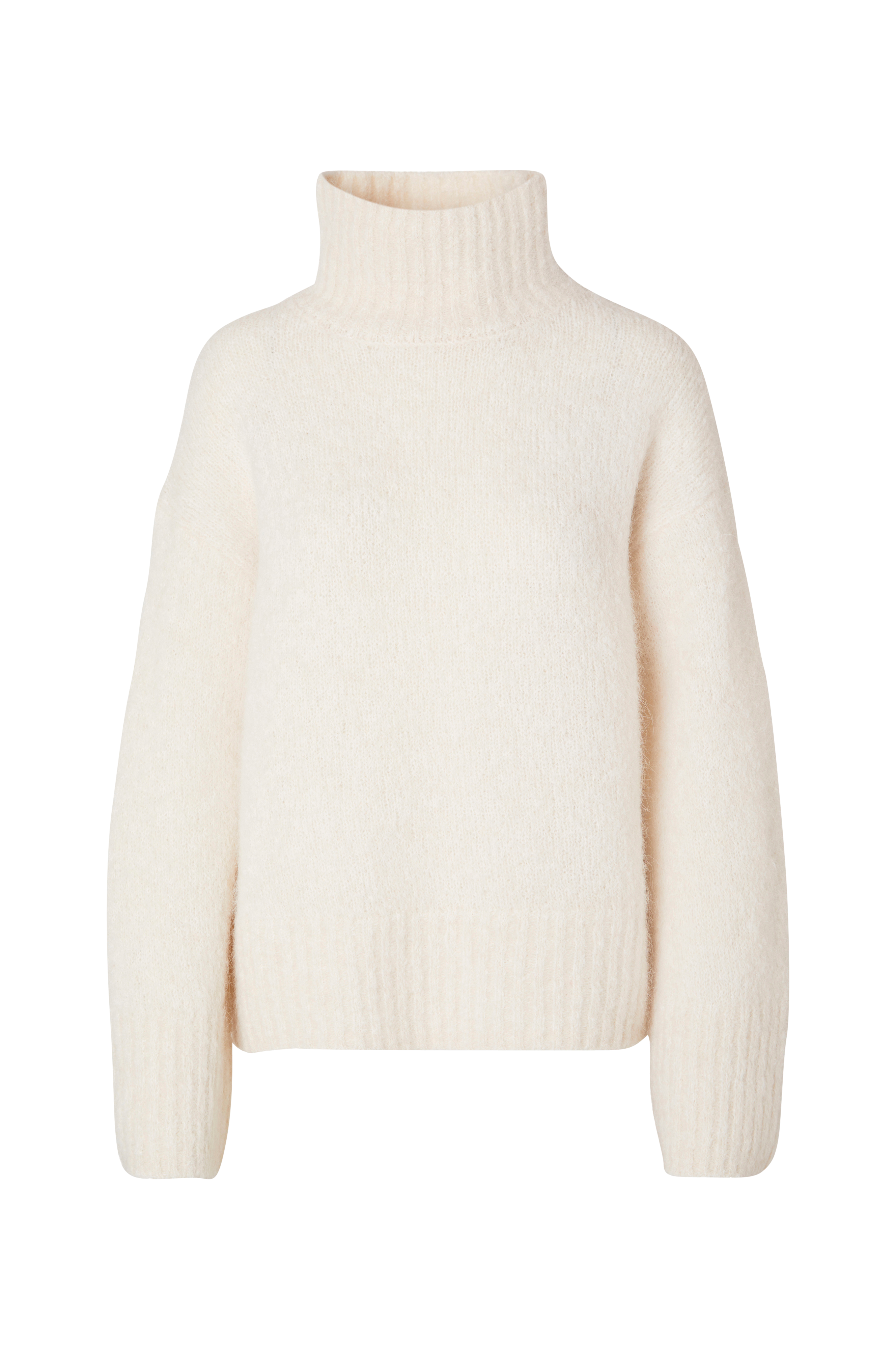 • Strikket, blød trøje i alpakablanding• Høj, ribbet halsudskæring• Nedsænkede skuldre• Brede, ribbede ærmeafslutninger• Ribbet søm