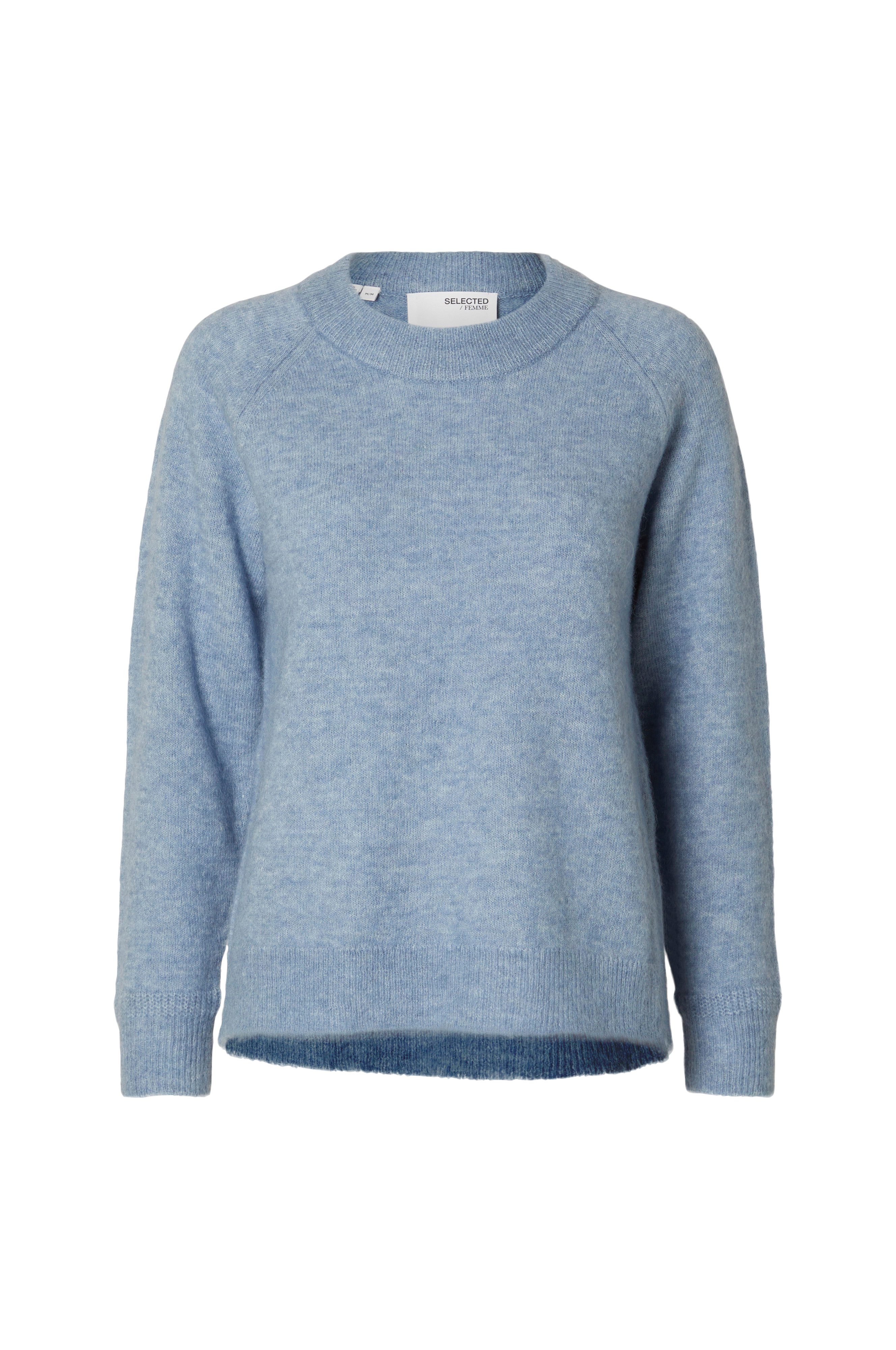 Trøje slfLulu LS Knit O-neck fra Selected Femme. Lige model i løst snit af blød finstrikket uldblanding. Rund hals med dobbelt ribkant samt raglanskåret ærme med ribstrik i ærmekant. Også ribstrik i kanten forneden.