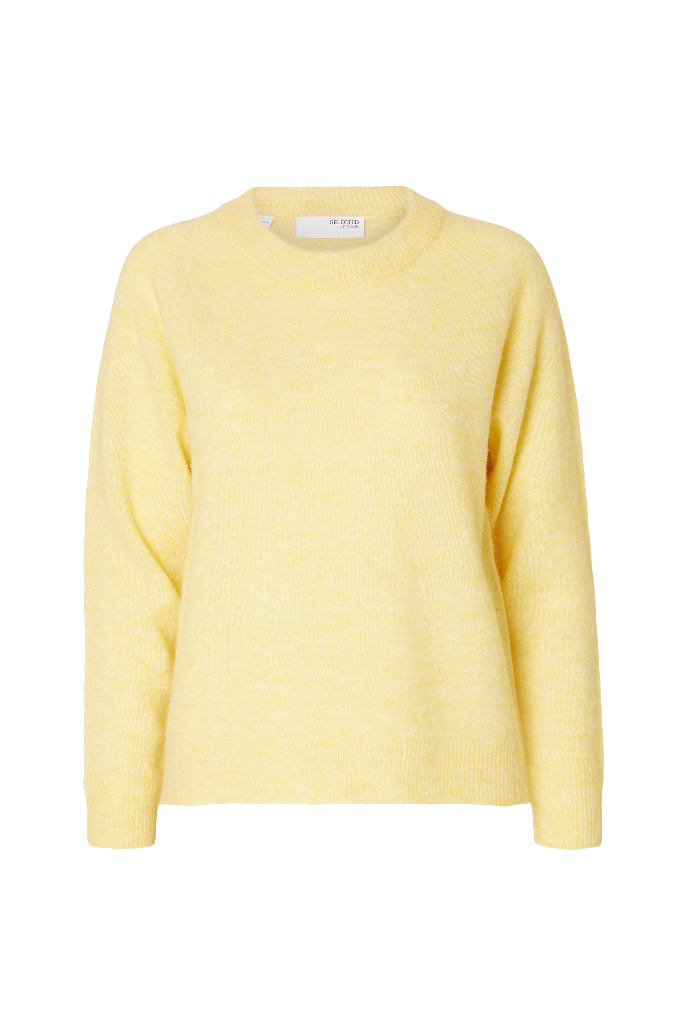Trøje slfLulu LS Knit O-neck fra Selected Femme. Lige model i løst snit af blød finstrikket uldblanding. Rund hals med dobbelt ribkant samt raglanskåret ærme med ribstrik i ærmekant. Også ribstrik i kanten forneden.