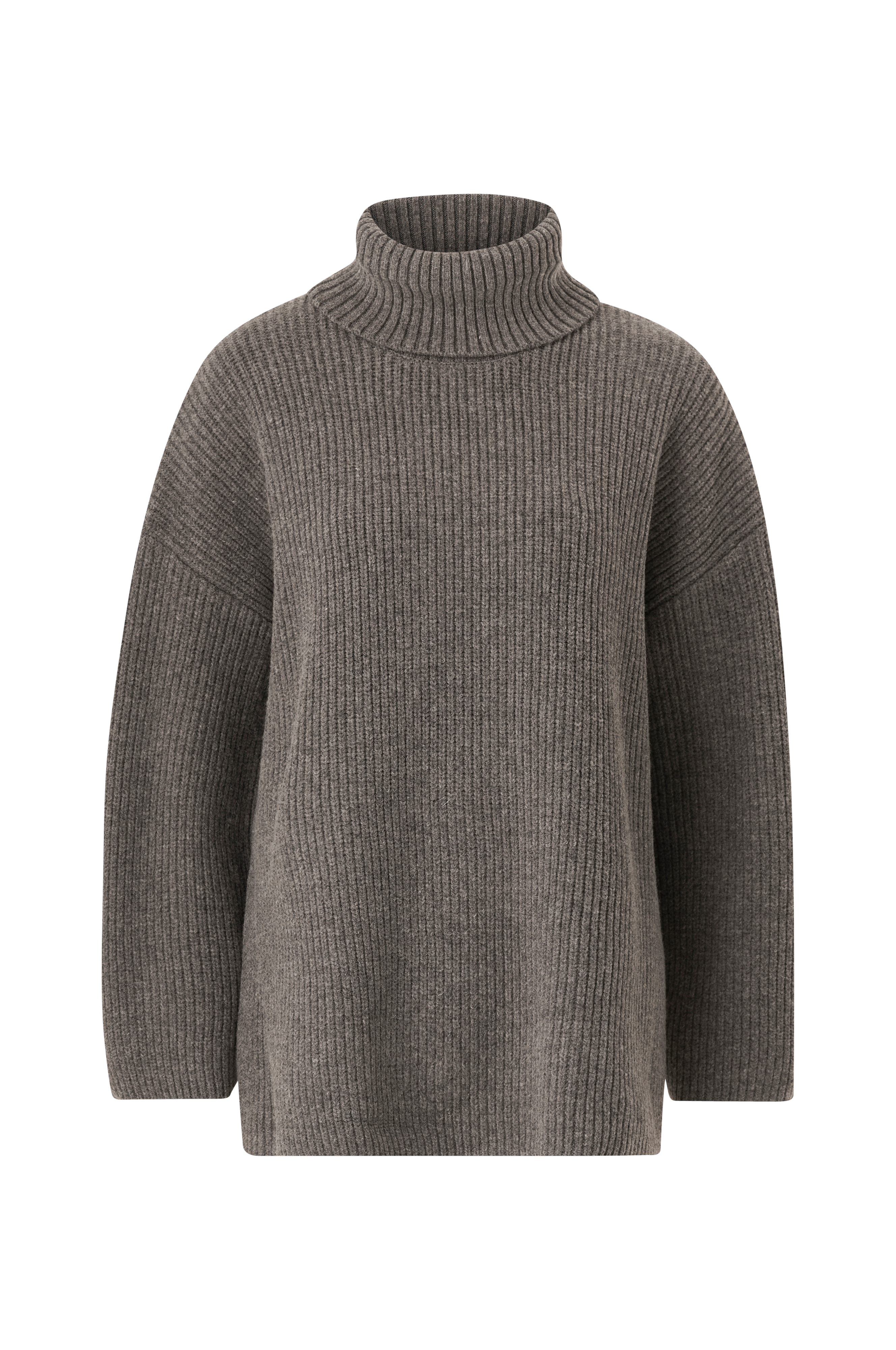 • Ribstrikket oversize model• Ribstrikket krave• Nedsænket skulder med lige, bredt ærme• Høj slids nede i siderne