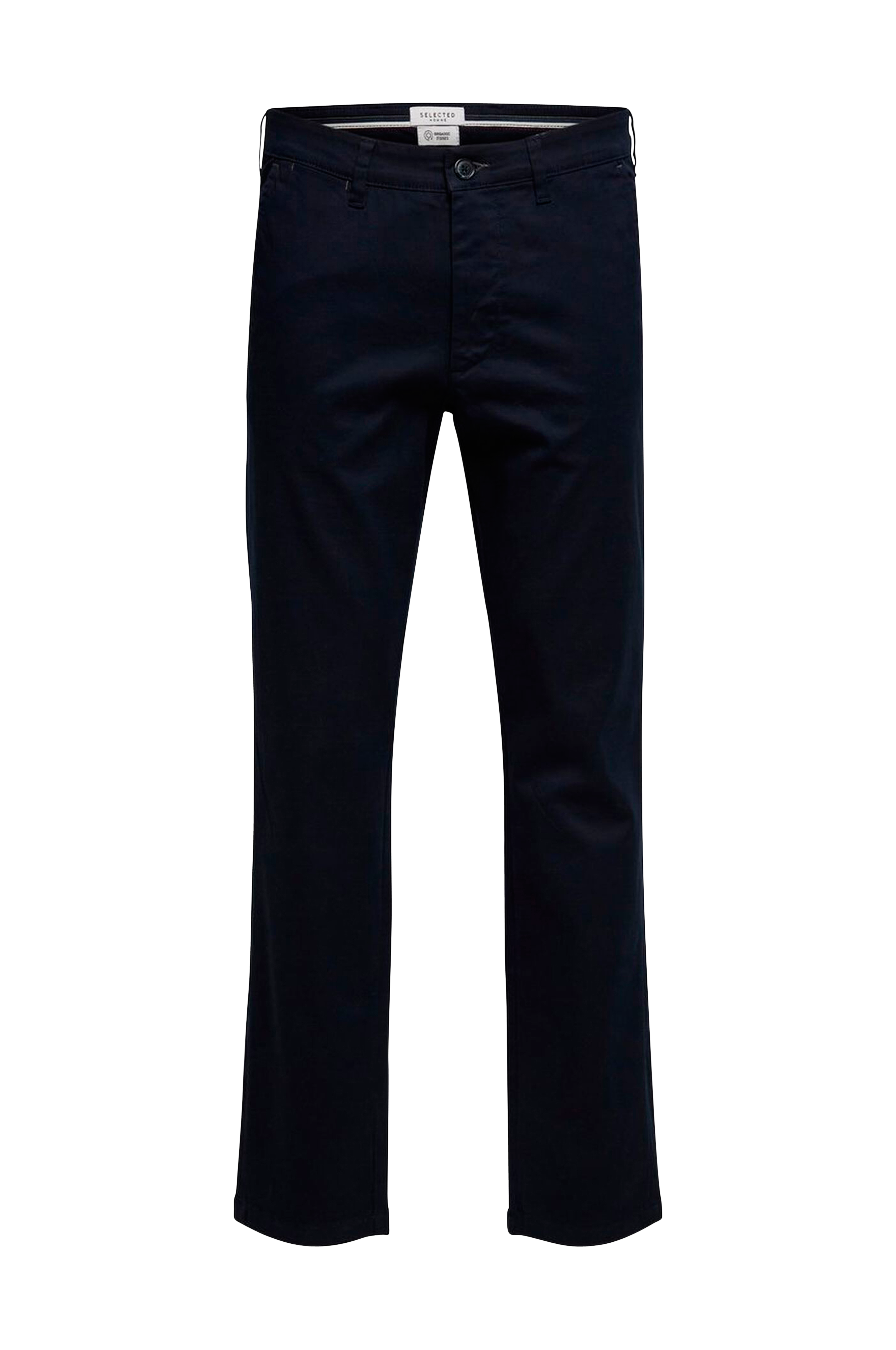 Chinos slhSlim-Miles Flex Pants fra Selected Homme. Klassisk model med to skråtskårne forlommer og to indsatte baglommer med knap. Linning med stropper og lynlås i gylpen samt vidde i lårene og bukseben, der bliver lidt smallere nedefter. Indvendig benlængde ca. 78 cm i str. M.