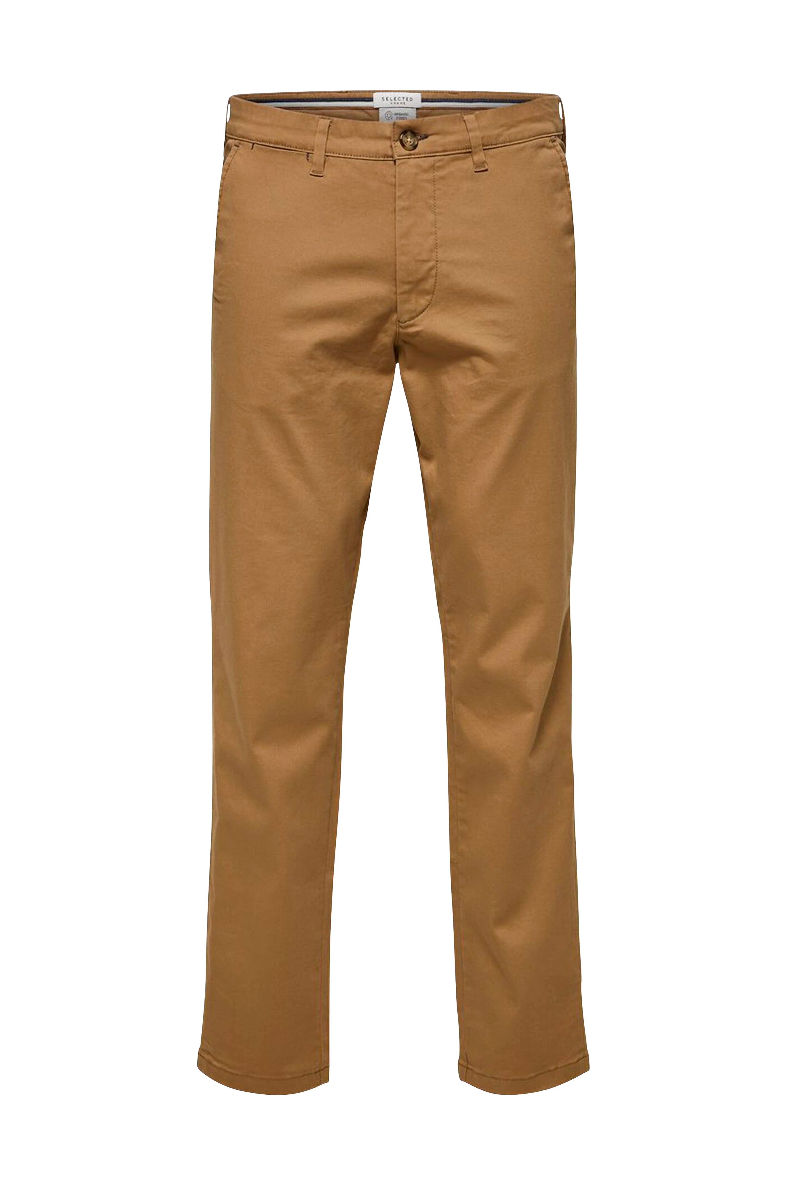 Chinos slhSlim-Miles Flex Pants fra Selected Homme. Klassisk model med to skråtskårne forlommer og to indsatte baglommer med knap. Linning med stropper og lynlås i gylpen samt vidde i lårene og bukseben, der bliver lidt smallere nedefter. Indvendig benlængde ca. 78 cm i str. M.