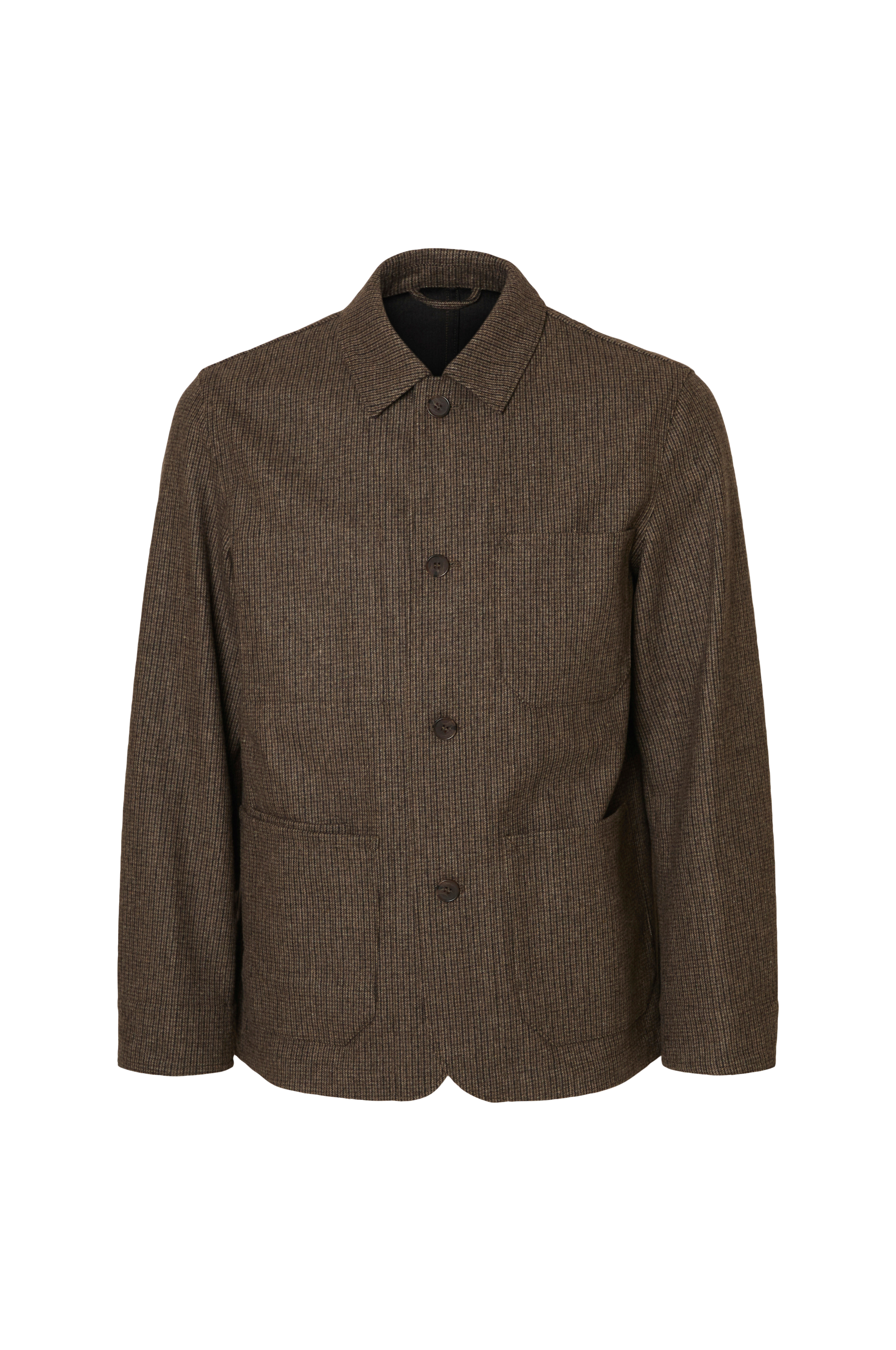 • Jakke i uldblanding med krave• Knaplukning• En brystlomme• Tre forlommer• Længde: 66 cm i størrelse M