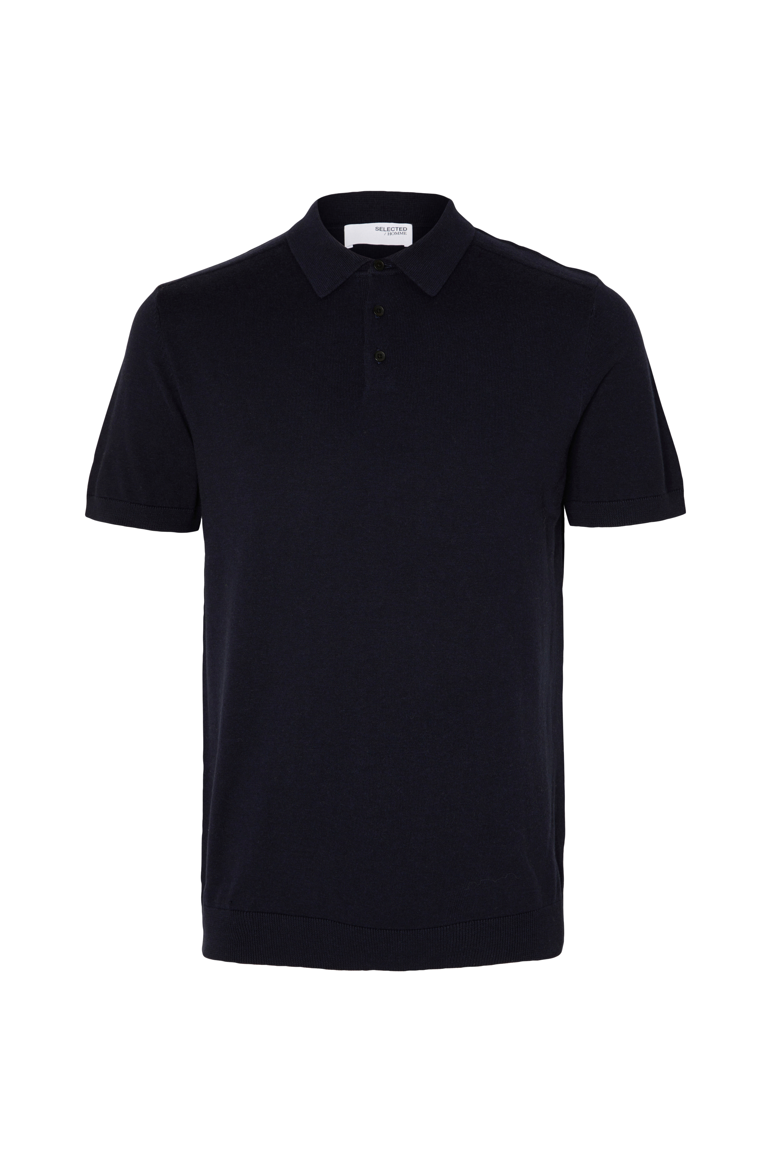 • Fintstrikket trøje med kort ærme• Krave• Tre knapper• Ribstrik ved manchetterne, nederst og på skuldrene