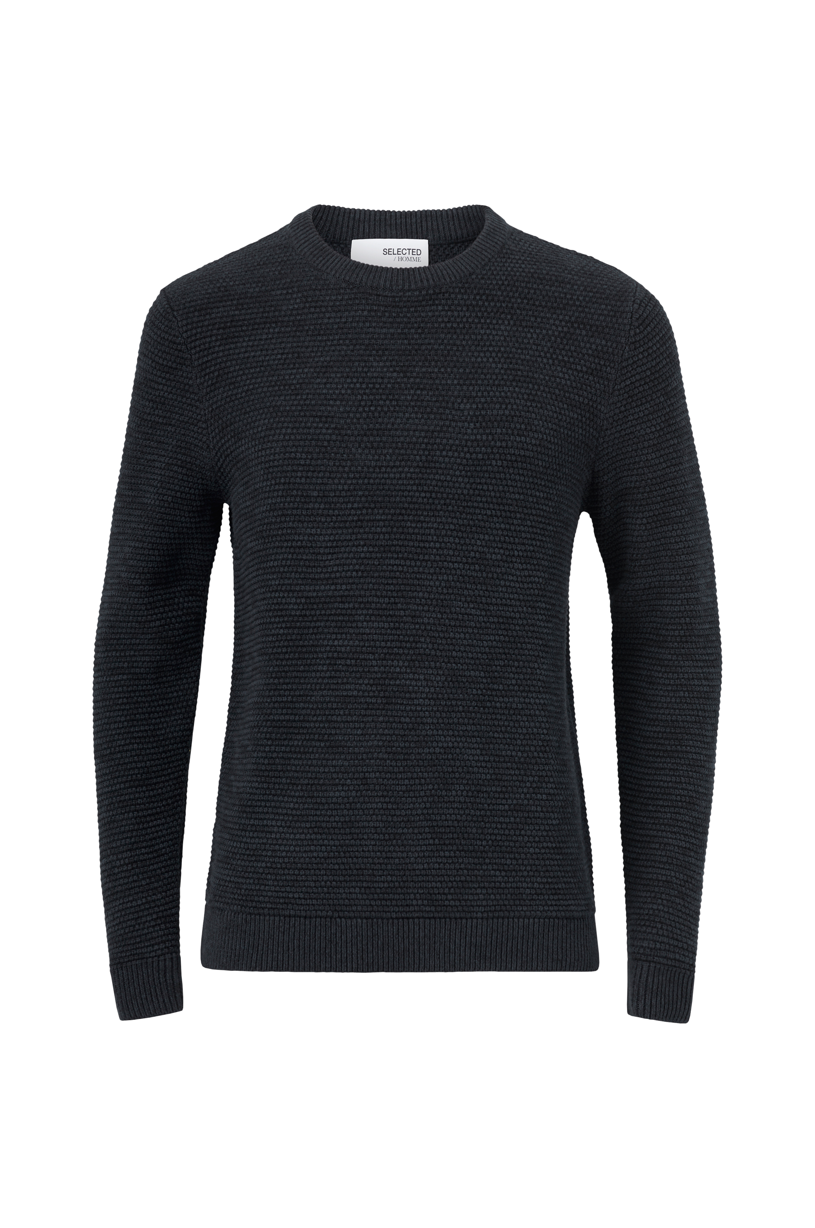 • Strukturstrikket trøje• Rund, ribbet halsudskæring• Ribmanchetter ved manchetterne og nederst