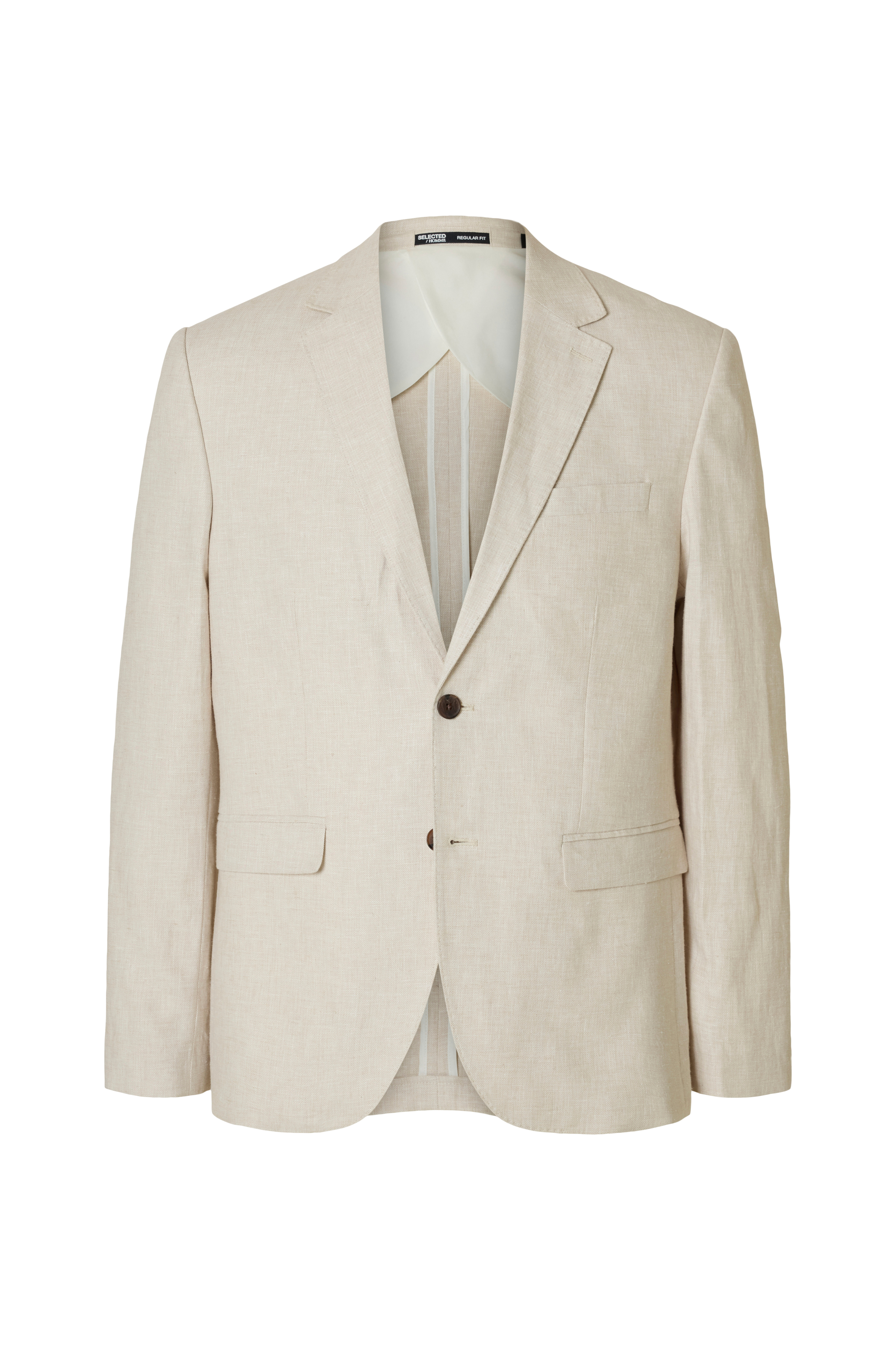 • Habitjakke i hørblanding• Normal pasform• Lukning med to knapper• Fire dekorationsknapper ved manchetterne• To lommer med lommelåg• En brystlomme• To ventilationer nede bagved• Længde: 75 cm i størrelse 50