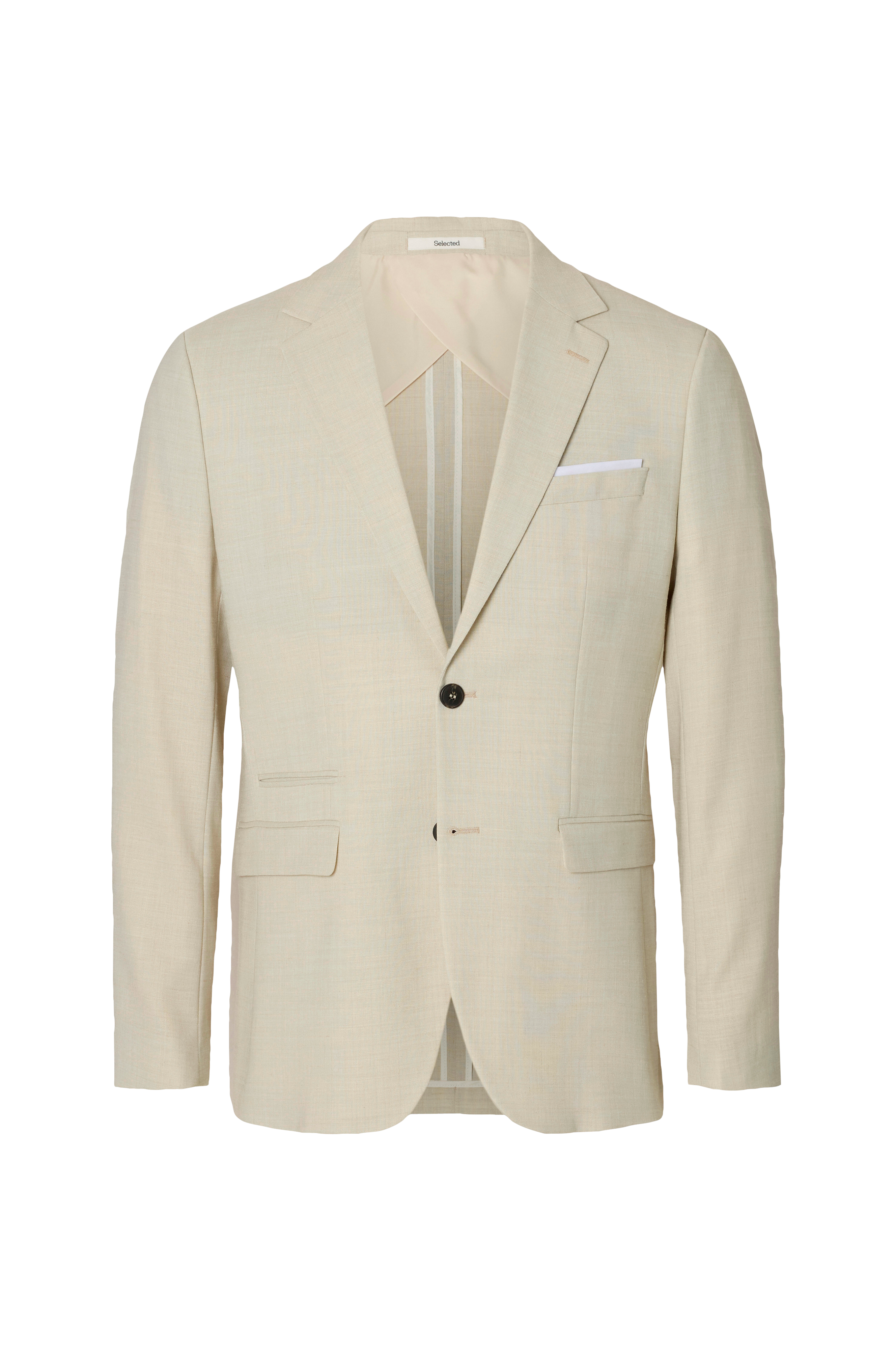• Jakke i en blanding af uld- og hørmaterialer• Smal pasform• To knapper• Fire dekorationsknapper ved manchetterne• To lommer med låg• En mobillomme• To inderlommer• Snydelomme på toppen• To slidser nede bagved• Længde: 73 cm i størrelse 48