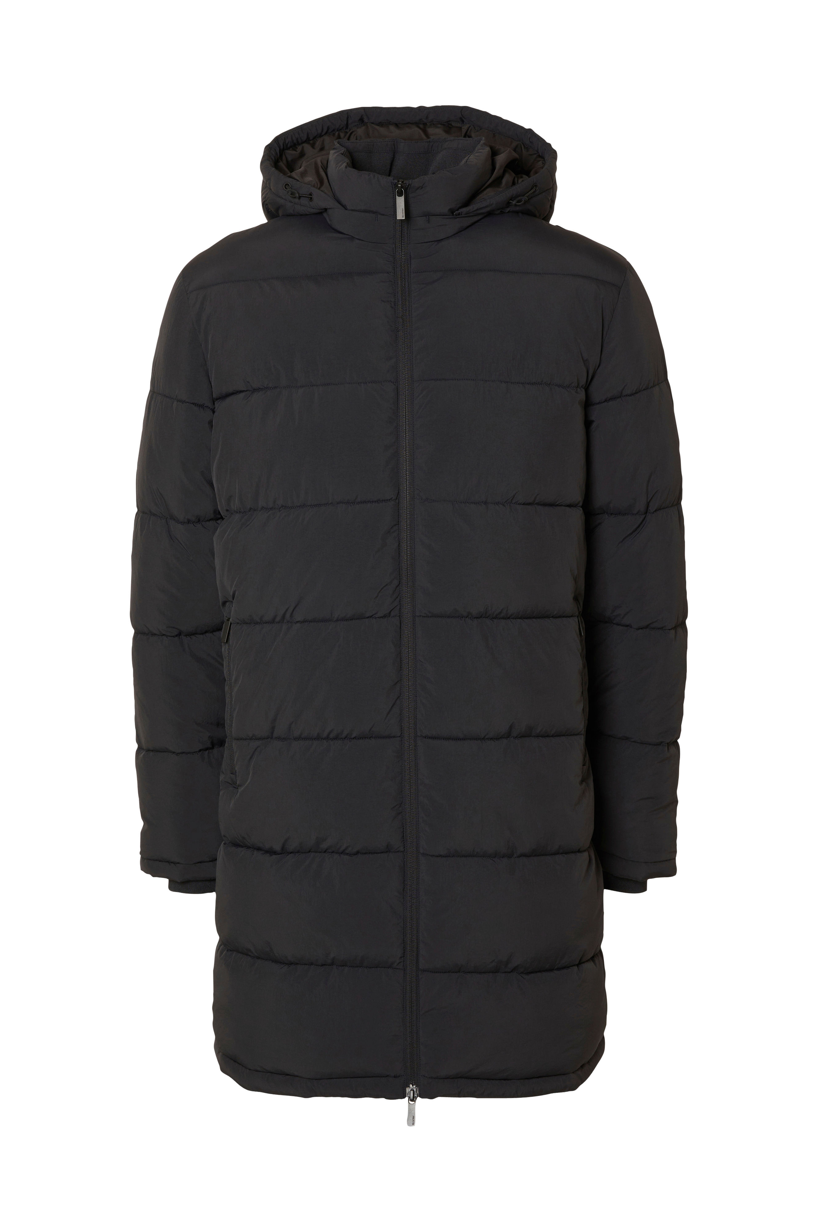 • Quiltet, foret jakke• Aftagelig hætte med træksnørre• Høj krave med ribstrikket inderside• To-vejs lynlås• To lommer med lynlås• En åben inderlomme• En inderlomme med lynlås• Ribmanchetter ved manchetterne• Længde: 94 cm i størrelse M