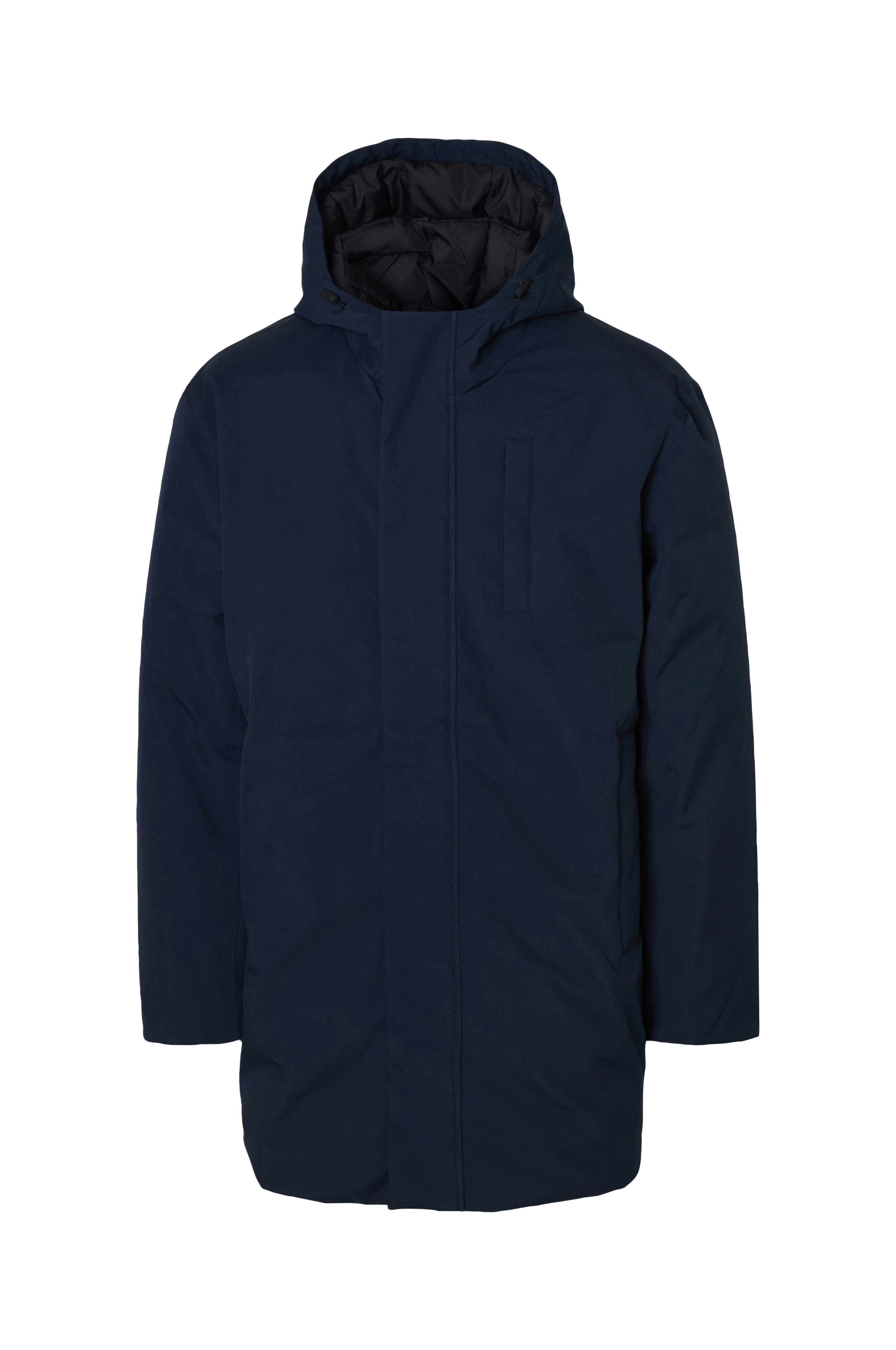 • Foret, lang parka• Høj krave med justérbar hætte• To-vejs lynlås foran• Vindflap over lynlåsen med trykknapper• Brystlomme med trykknap• To lommer foran• Inderlomme med lynlås• Længde: 88 cm i størrelse M