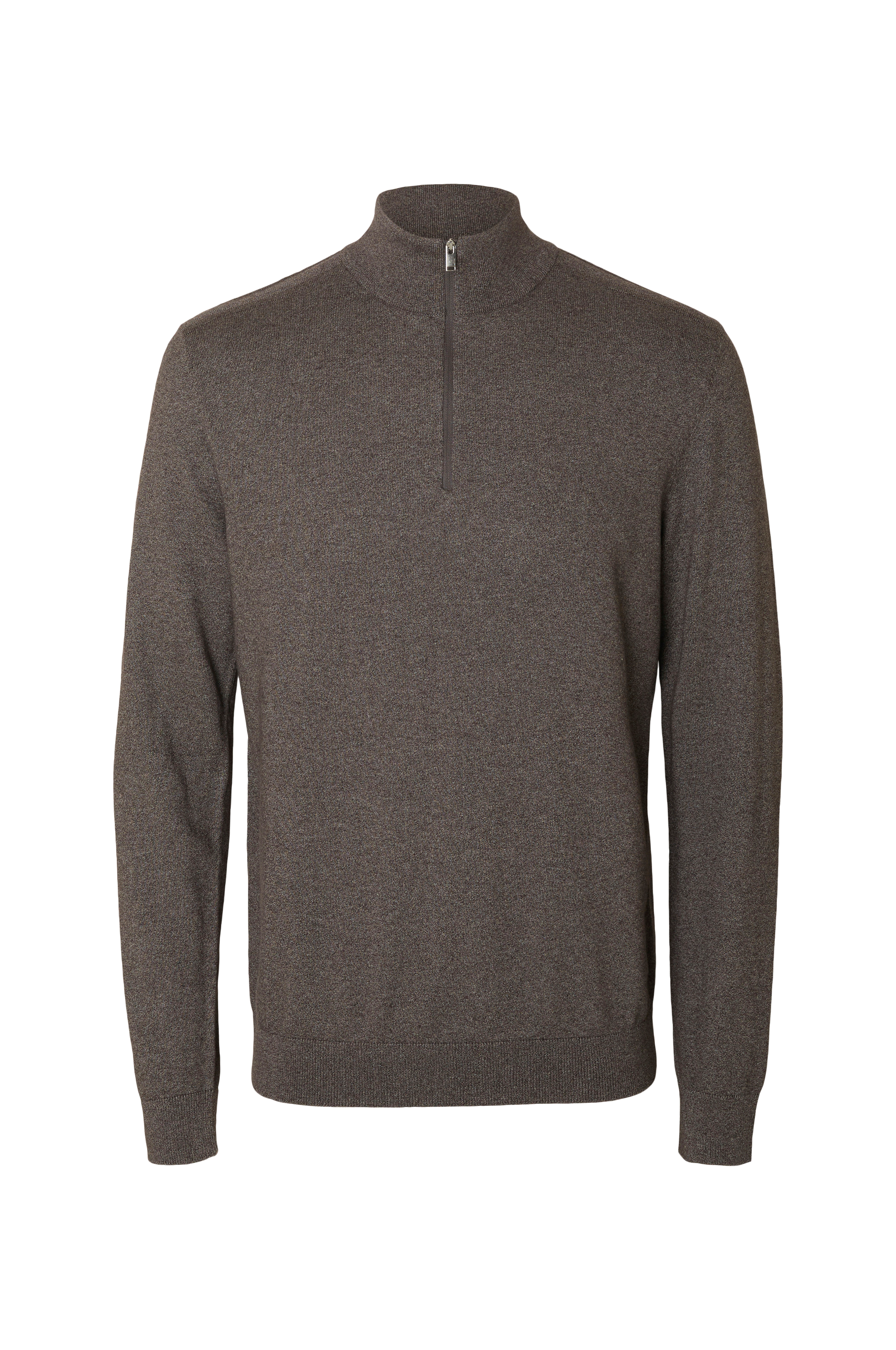 Rullekravetrøje slhBerg Half Zip Cardigan fra Selected Hommes. Finstrikket model med høj, ribstrikket krave med kort lynlås foran. Strukturstrik på skuldrene og ribkant forneden samt i ærmekant.