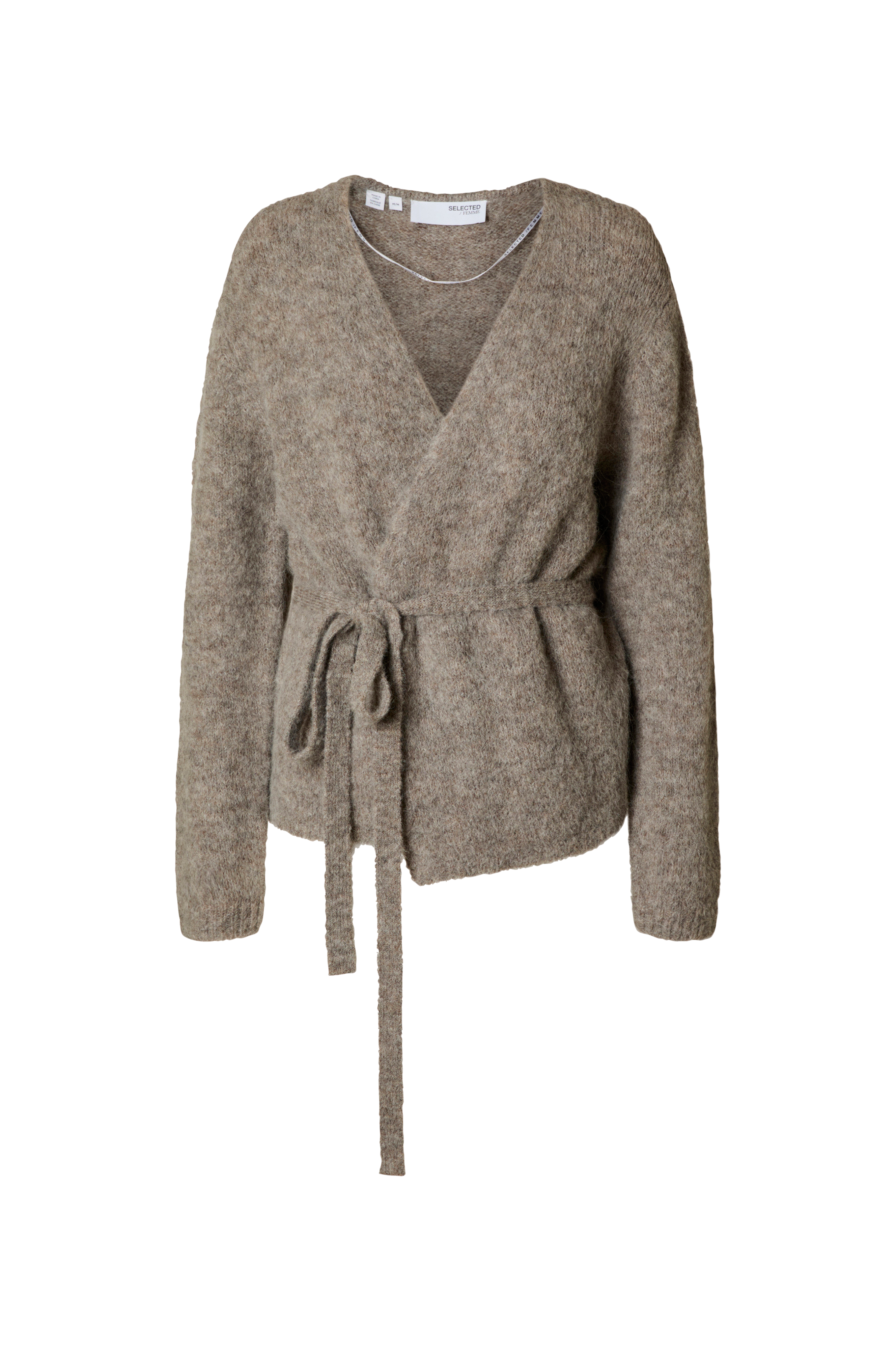 • Langærmet, fintstrikket cardigan i alpakablanding• Åben front med aftageligt bindebælte ved taljen