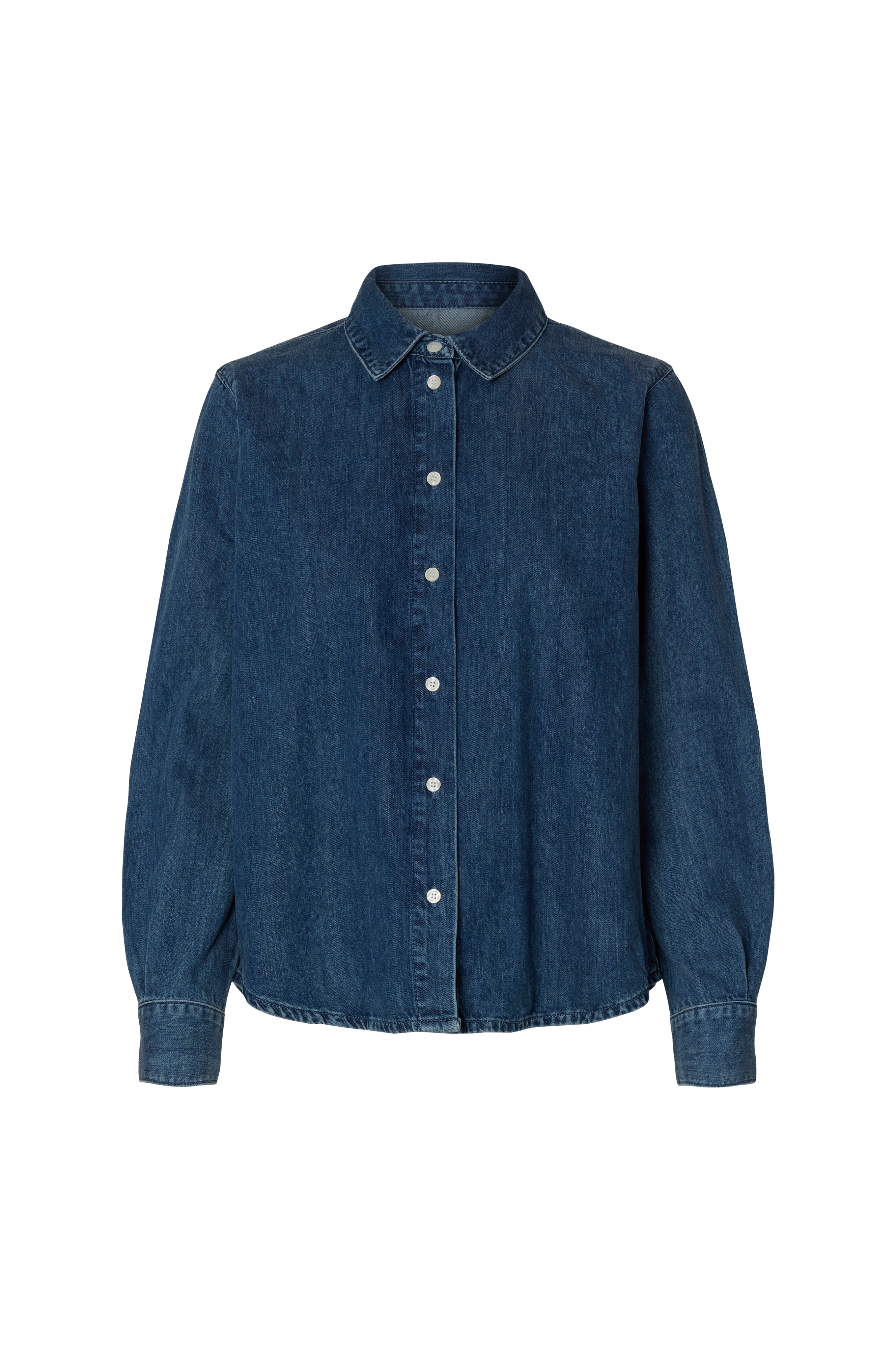 • Skjorte i bomuldsdenim• Skjortekrave• Manchetter med en knap• Knapstolpe foran• Afrundet søm