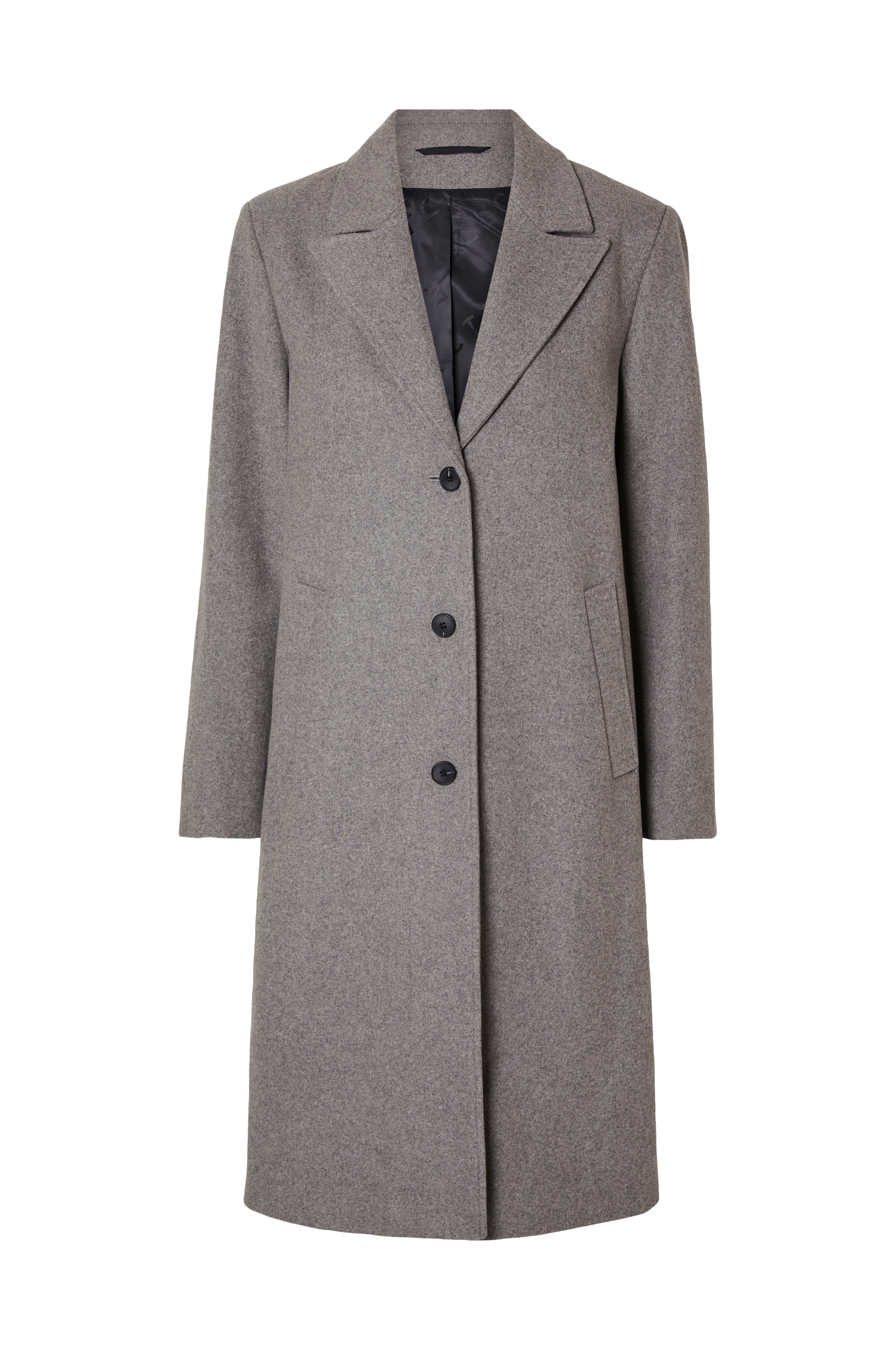 • Frakke i uldblanding• Knaplukning• Sidelommer• En inderlomme• Tre dekorationsknapper ved manchetterne• Slids nede bagved• Vævet for• Længde: 94 cm i størrelse 36