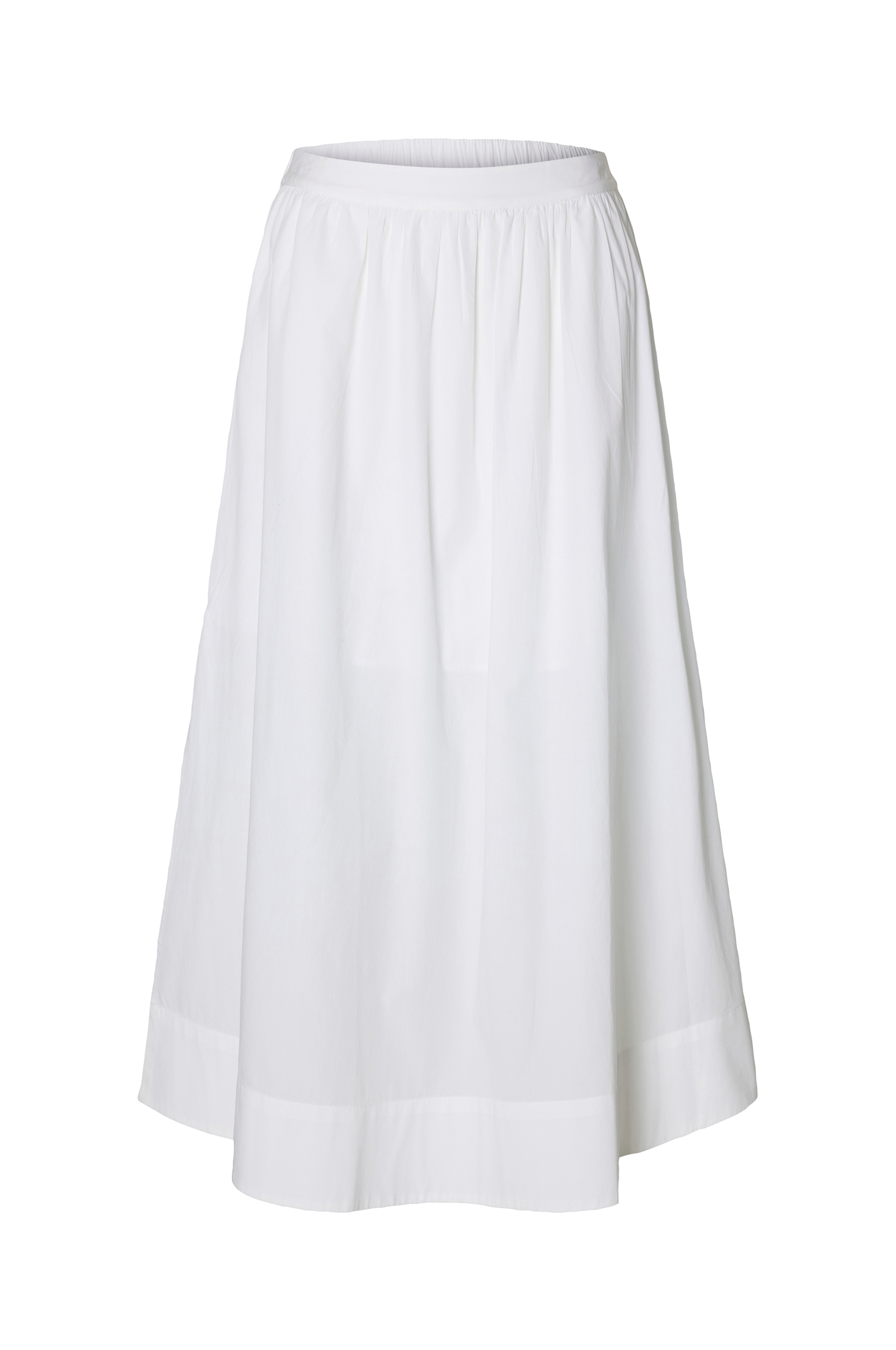• A-facon, bred nederdel• Samling omkring taljen• Sidelommer• Elastik bagpå ved taljen• Høje slidser nede i siderne• Kort inderfor• Længde: 91 cm i størrelse S