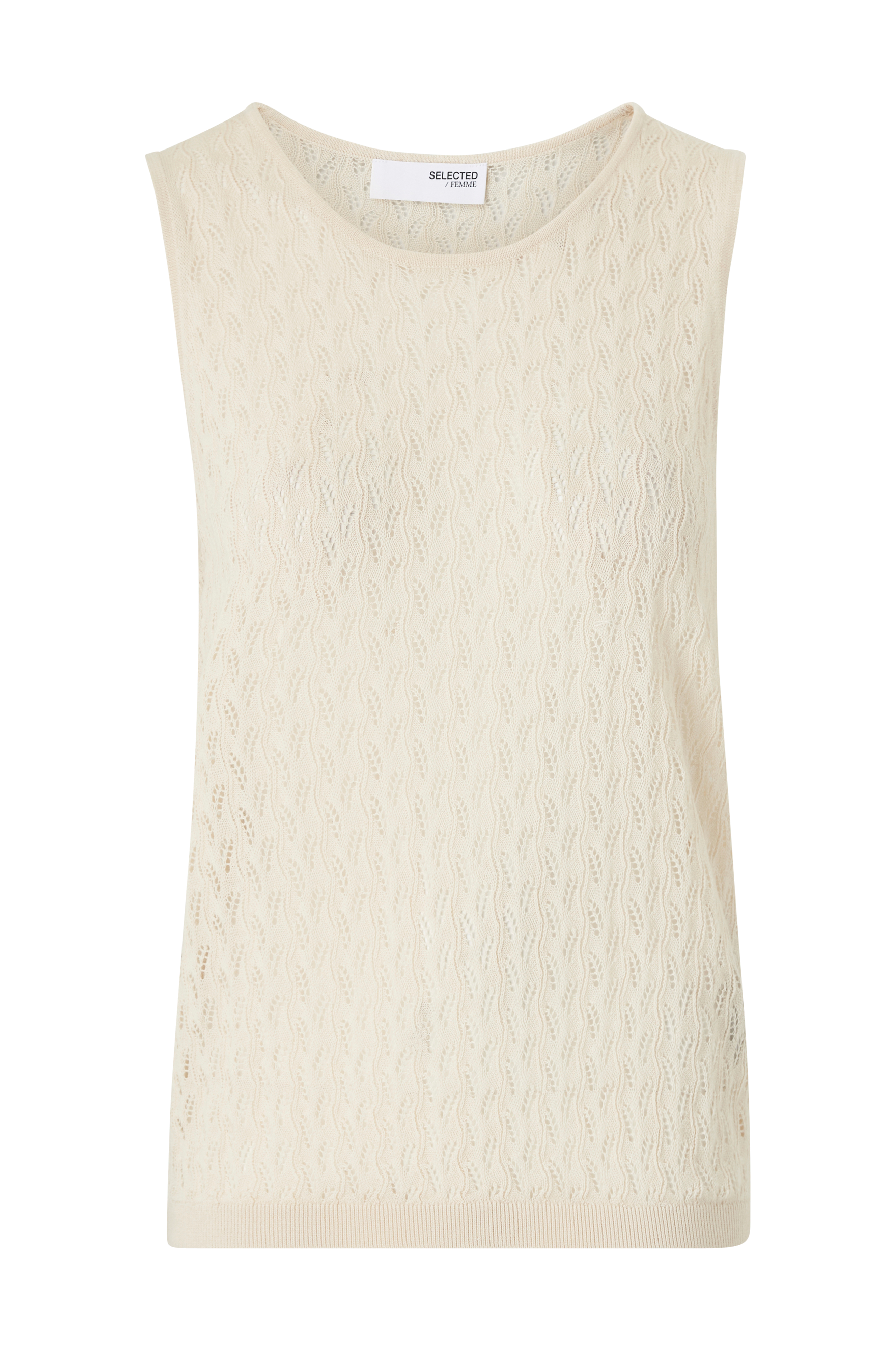 • Ærmeløs top• Tynd, fintstrikket kvalitet med hulmønster