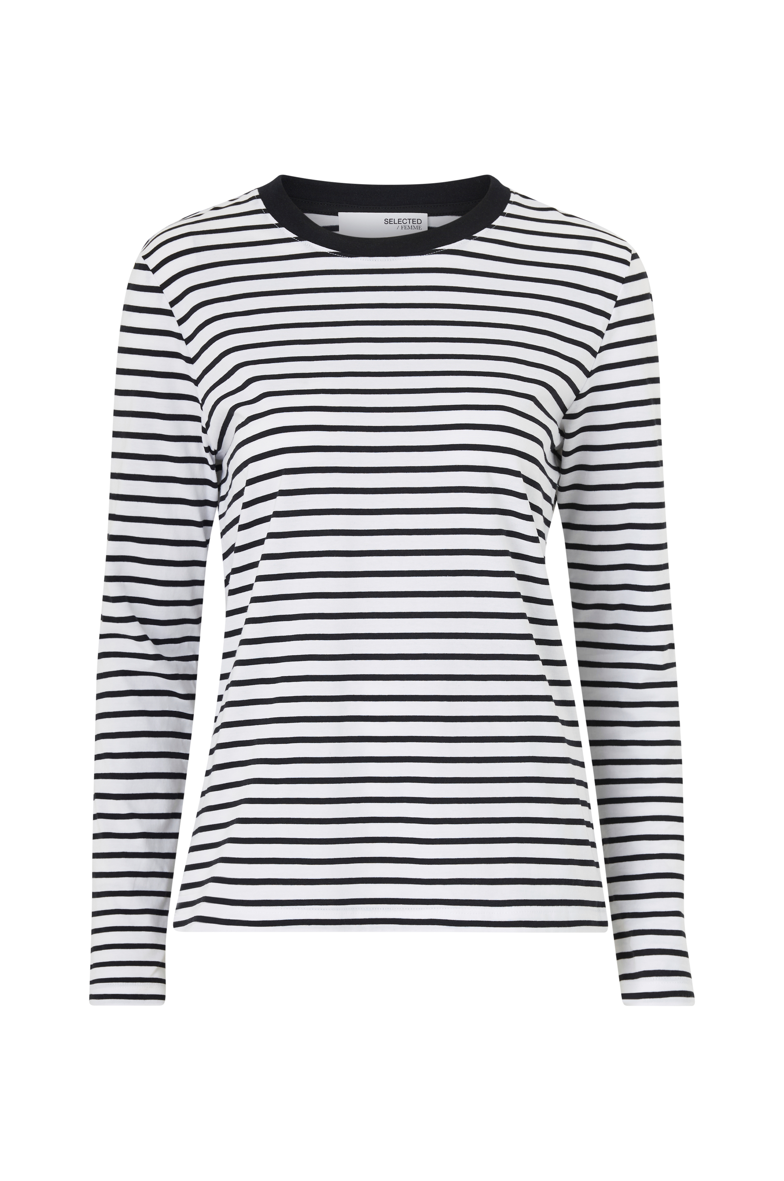 • Stribet top i bomuld• Rund, ribbet halsudskæring• Lange ærmer