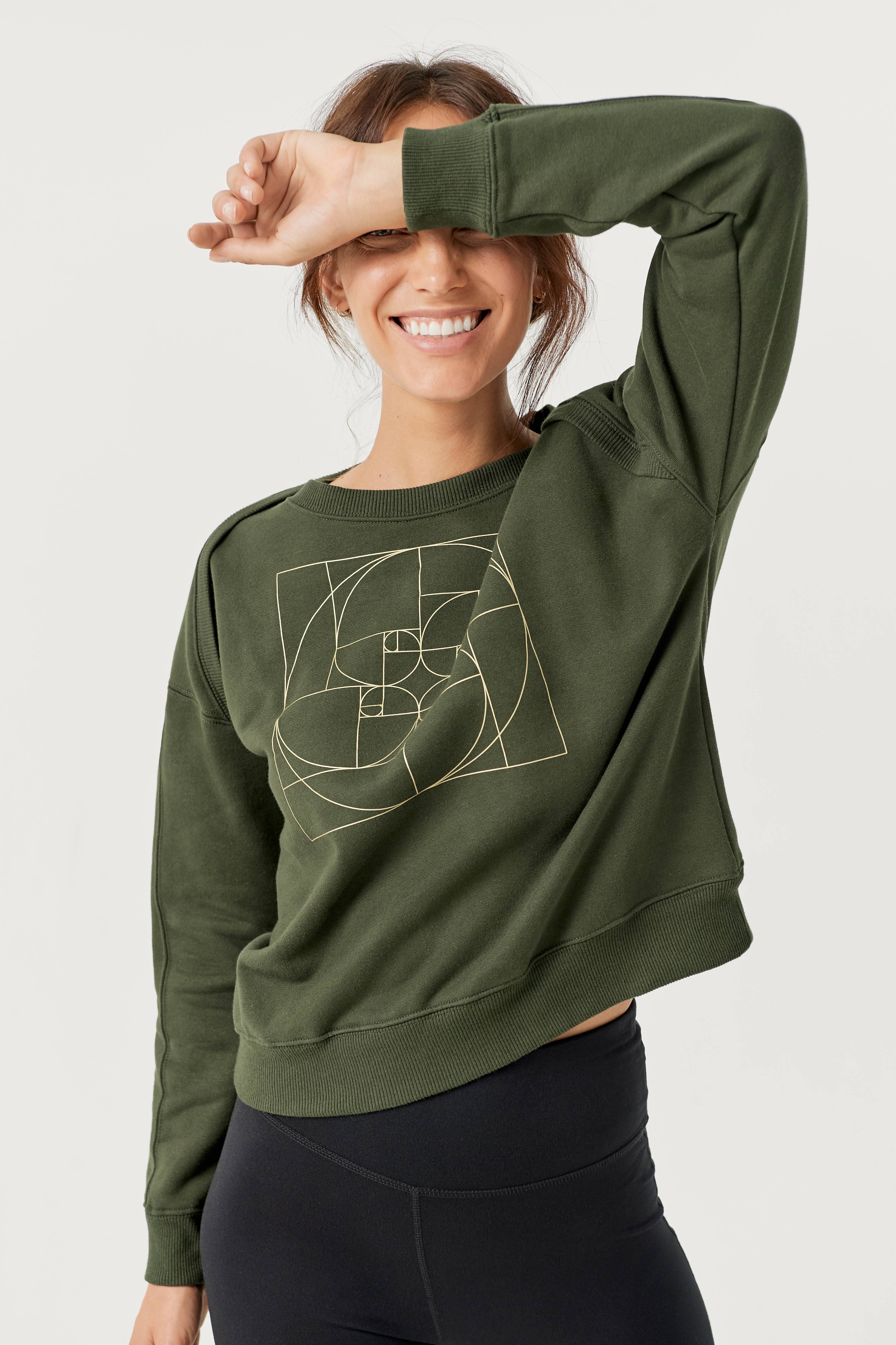 Denne sweatshirt er både behagelig og stilfuld, passer lige så godt hjemme som på yogamåtten.