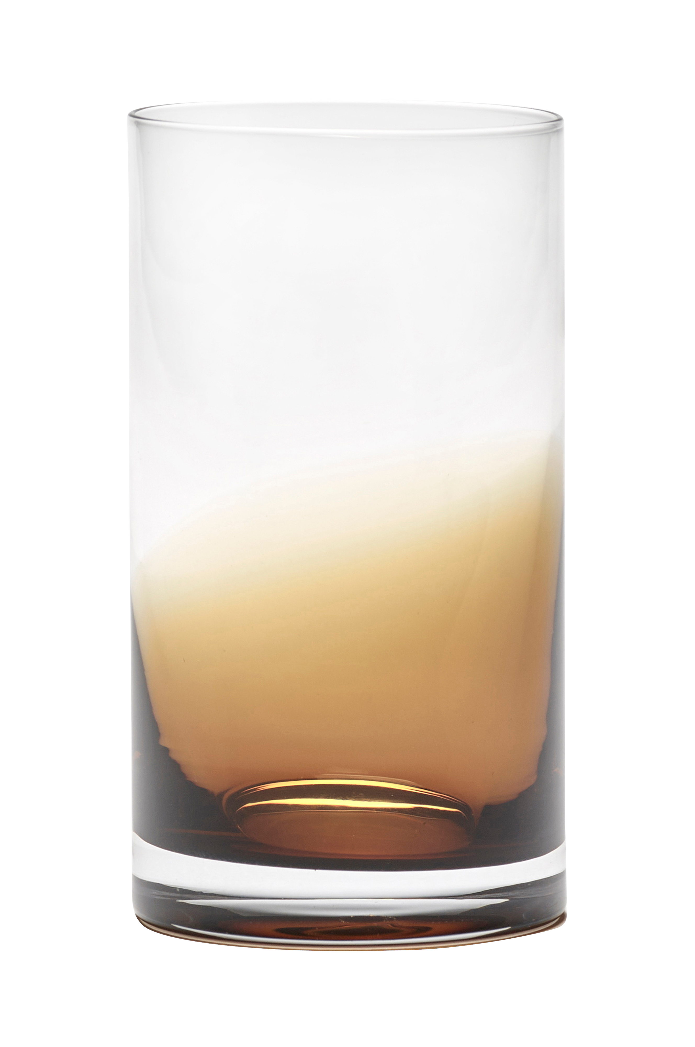 Sammen med sin porcelænsserie har Kelly Wearstler skabt ravfarvede glasvarer, der minder om meget værdsatte antikke og vintage genstande verden over. Denne lagdelte finish er dannet ved at sprøjte en ravfarvet kerne ind mellem to transparente lag, hvilket giver en subtil farveudvikling. Lette, luftige toner spiller sammen med den faste, tykke bund og fremhæver den strømlinede, lige silhuet af disse glas.