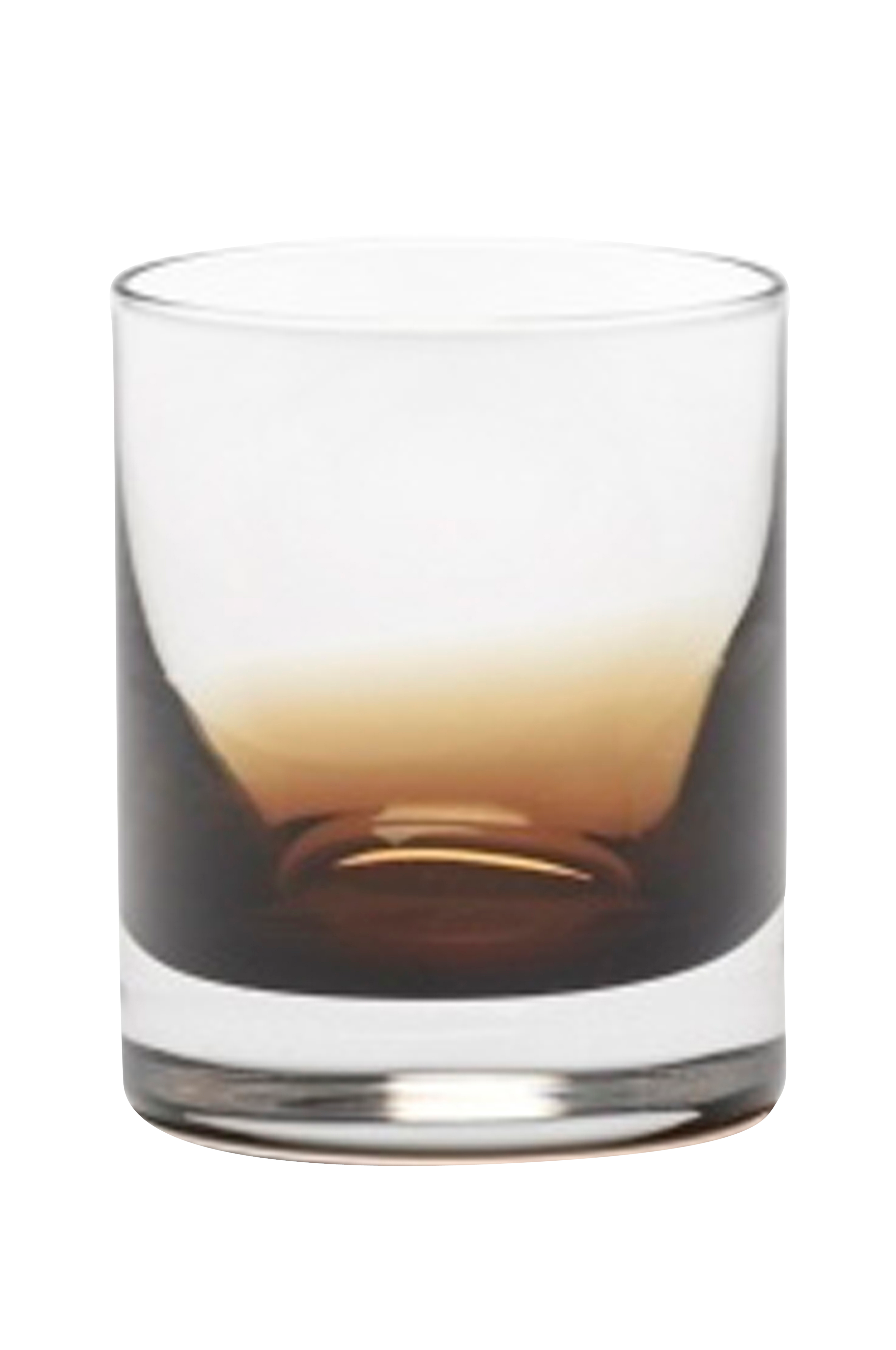 Ud over porcelænsstel har Kelly Wearstler lavet ravfarvet glas inspireret af den udbredte appel fra antikke og vintage designs i mange regioner. Denne lagdelte farveeffekt er skabt ved at placere et ravfarvet lag mellem to transparente lag. Den lette, luftige nuance står i levende kontrast til den tykke glasbund og den minimale, lige silhuet på disse tumblerglas.