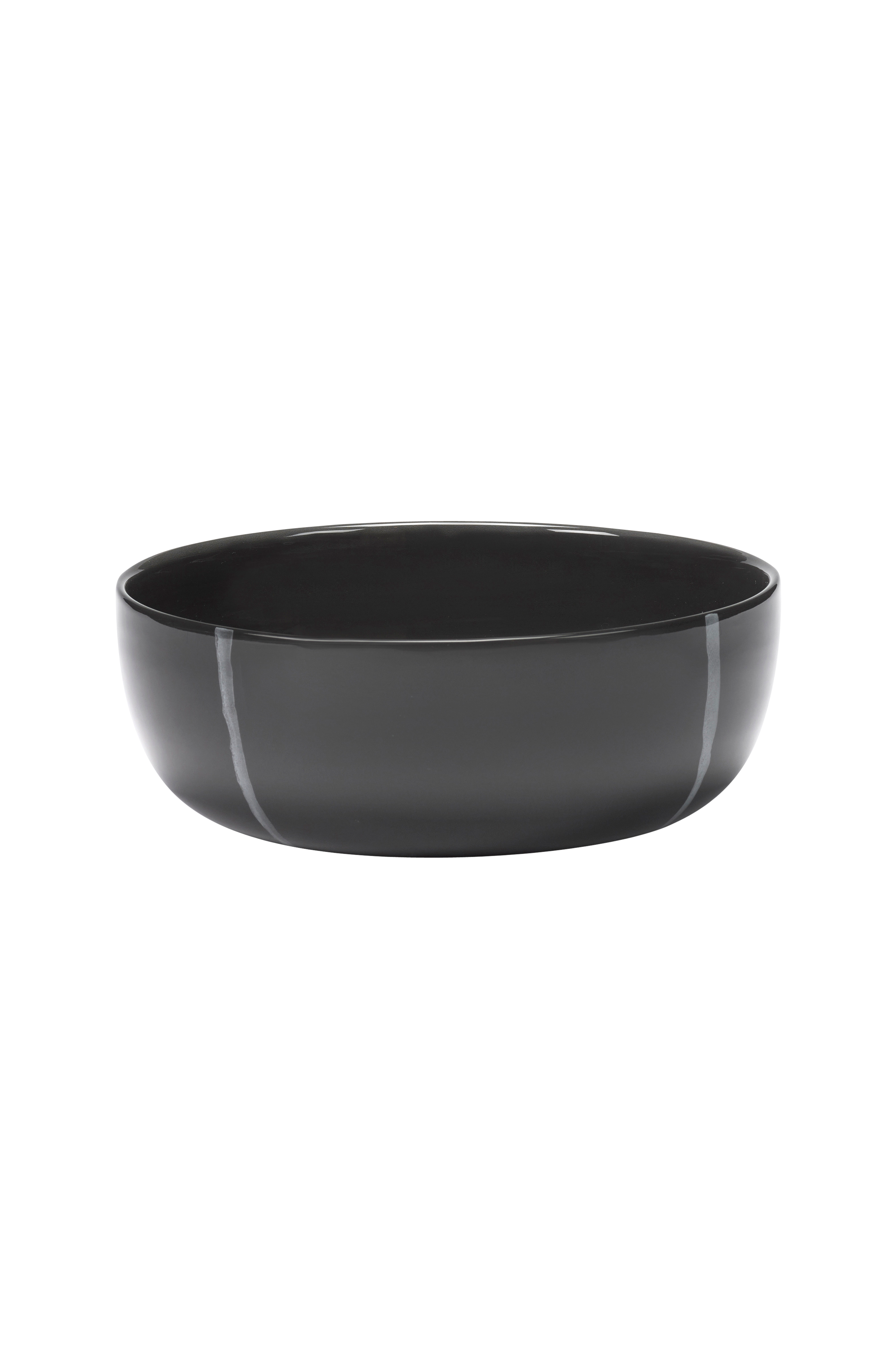 Kelly Wearstler trak på digital grafik og Bauhaus-inspirationer for at skabe Zuma, hendes porcelænsserie. Hvert stykke er prydet med et omhyggeligt stemplet design, der giver indtryk af penselarbejde, før glasuren tilsættes. Kollektionen har en række mønstre, som gør det muligt at kombinere forskellige former og toner - hvid, mørkegrå og en subtil orange accent. Denne tilgang giver en fleksibel måde at blande former og farver på i en sammenhængende linje.
