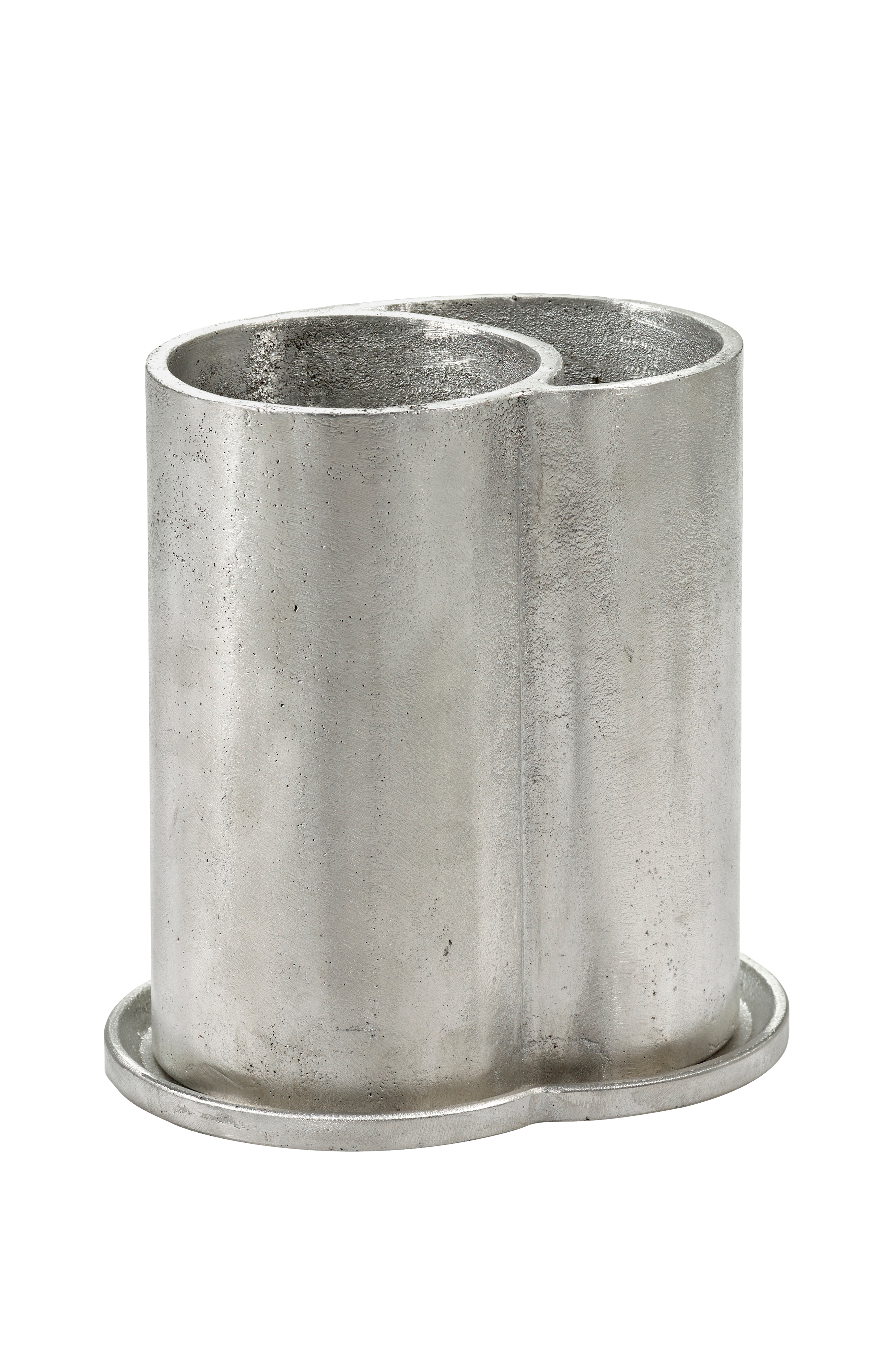 Sergio Herman går til hvert projekt med stor omhu, og hans vinkøler til Surface-linjen er ingen undtagelse. Han ønskede specifikt at holde vinen dejligt kølig så længe som muligt, så han valgte aluminium, fordi det tilpasser sig godt til frysning og holder på kulden uden problemer. Køleren har to rum - et til flasken og et andet til ekstra is - og indeholder en matchende bakke, der opsamler kondensvand og holder bordpladen tør. Det støbte aluminiums ydre har en karakteristisk, uregelmæssig finish, der indbyder til et nærmere kig og afspejler den håndlavede proces bag skabelsen.